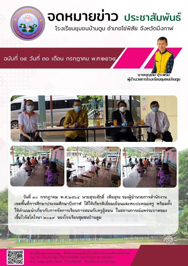 (เผยแพร่เมื่อวันที่ 6 กย 2564 13:36:46 น.) ผู้รายงาน : ธุรการโรงเรียน ชุมชนบ้านตูม