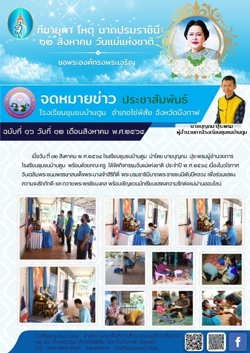 โรงเรียนชุมชนบ้านตูม ได้จัดกิจกรรมวันแม่แห่งชาติ ประจำปี พ.ศ.๒๕๖๔