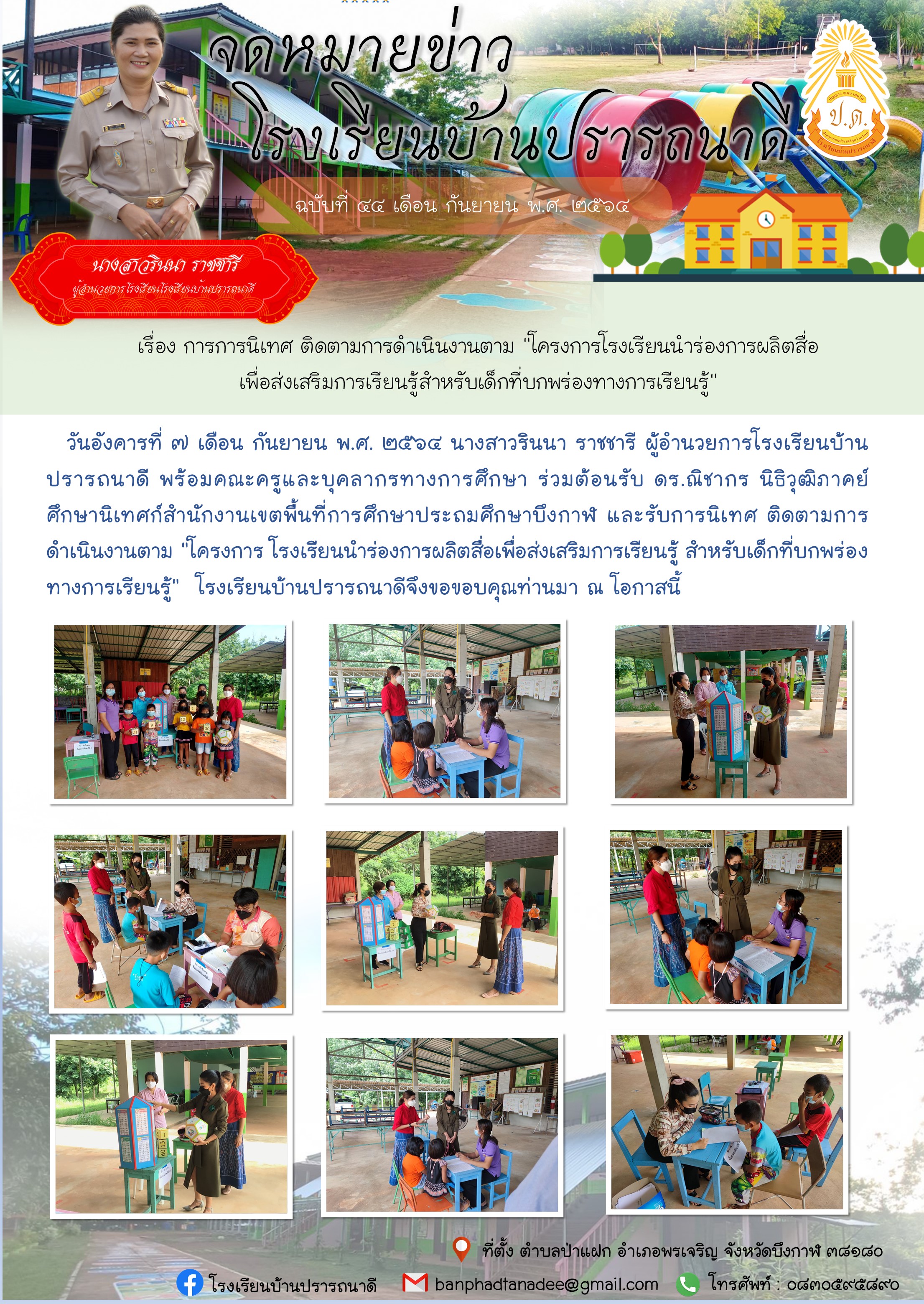 จดหมายข่าว โรงเรียนบ้านปรารถนาดี เรื่อง การการนิเทศ ติดตามการดำเนินงานตาม "โครงการโรงเรียนนำร่องการผลิตสื่อเพื่อส่งเสริมการเรียนรู้สำหรับเด็กที่บกพร่องทางการเรียนรู้"