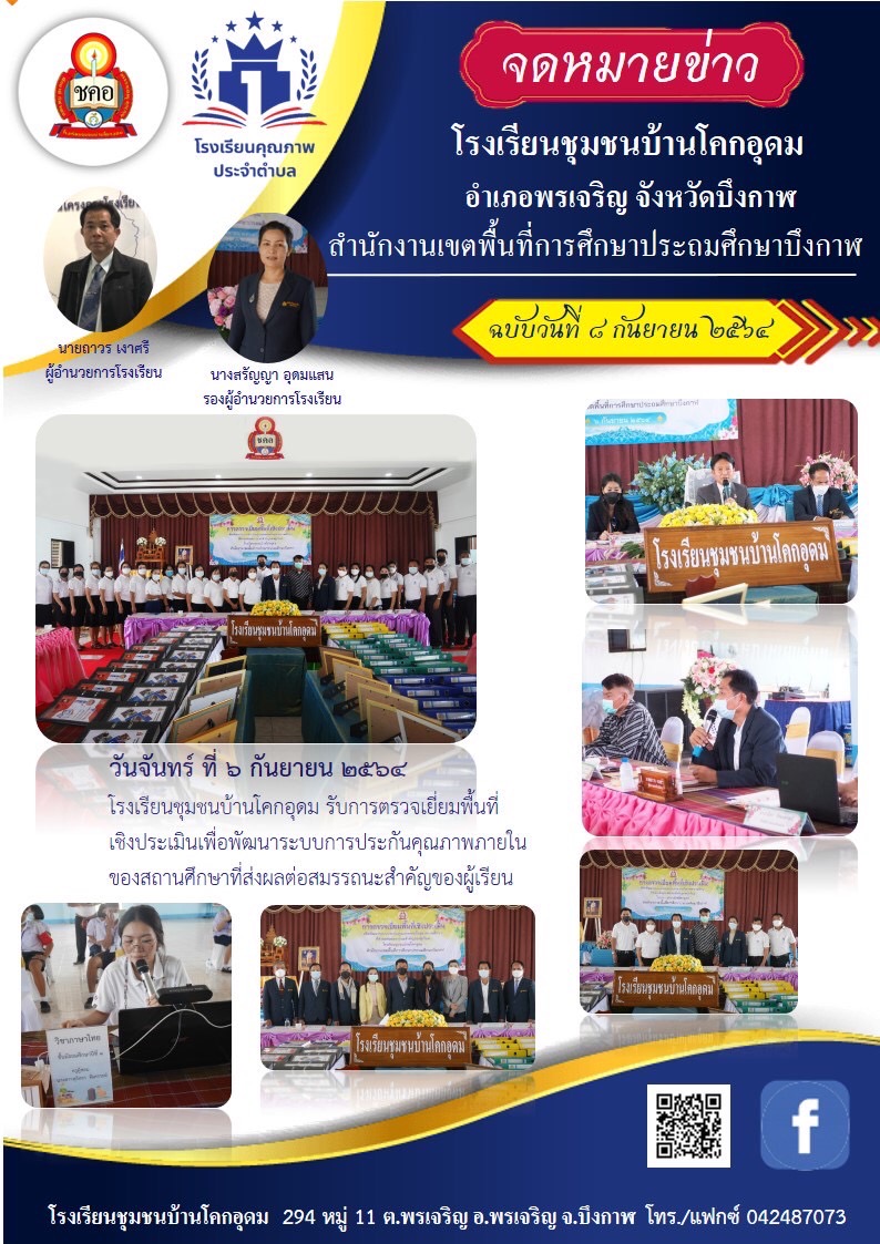 โรงเรียนชุมชนบ้านโคกอุดม รับการตรวจเยี่ยมพื้นที่เชิงประเมินเพื่อพัฒนาระบบการประกันคุณภาพภายในของสถานศึกษาที่ส่งผลต่อสมรรถนะสำคัญของผู้เรียน