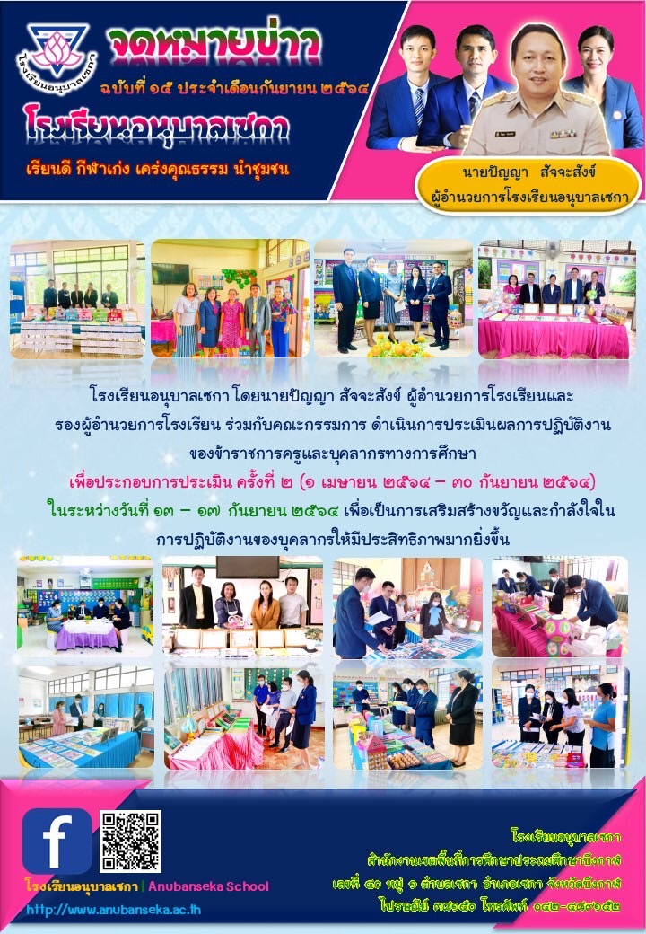 การประเมินผลการปฏิบัติงานของข้าราชการครูและบุคลากรทางการศึกษา เพื่อประกอบการประเมิน ครั้งที่ 2 ในระหว่างวันที่ 13-17 กันยายน 2564 เพื่อเป็นการเสริมสร้างขวัญและกำลังใจในการปฏิบัติงานของบุคลากรให้มีประสิทธิภาพมากยิ่งขึ้น