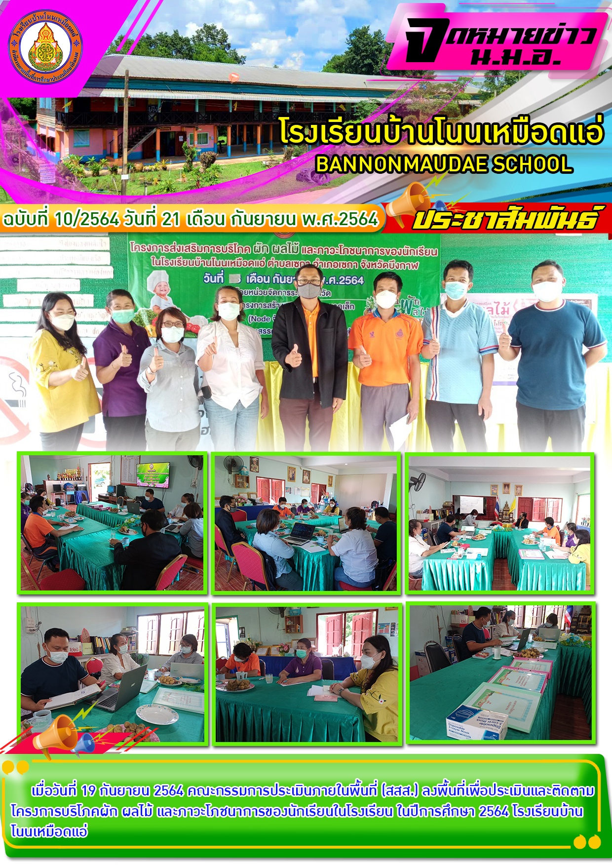 โรงเรียนบ้านโนนเหมือดแอ่ ประชาสัมพันธ์จดหมายข่าว ฉบับที่ 10/2564 คณะกรรมการประเมินภายในพื้นที่ (สสส.) ลงพื้นที่เพื่อประเมินและติดตามโครงการบริโภคผัก ผลไม้ และภาวะโภชนาการของนักเรียน