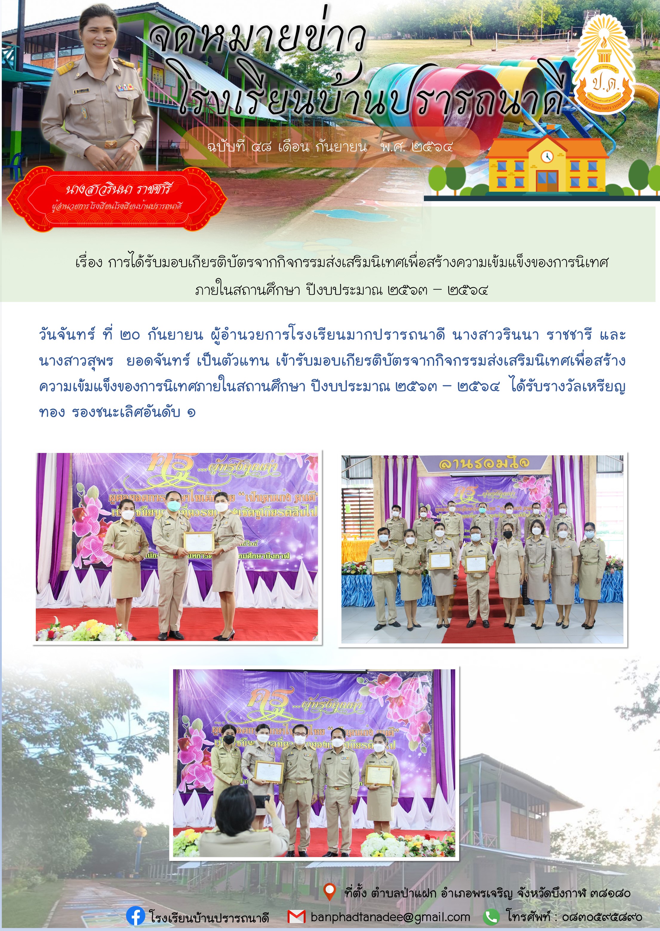 จดหมายข่าว โรงเรียนบ้านปรารถนาดี เรื่อง การได้รับมอบเกียรติบัตรจากกิจกรรมส่งเสริมนิเทศเพื่อสร้างความเข้มแข็งของการนิเทศภายในสถานศึกษา ปีงบประมาณ ๒๕๖๓ – ๒๕๖๔