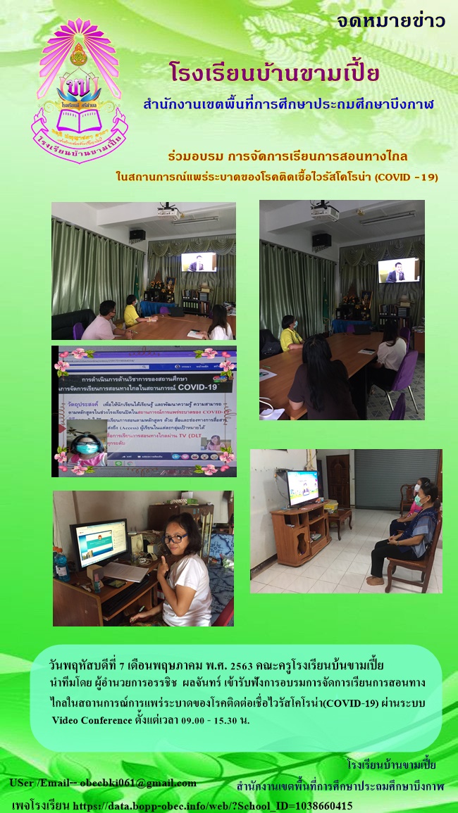 รายงานข่าวประชาสัมพันธ์การเข้ารับฟังการอบรมการเรียนการสอนทางไกลในช่วงระบาดของไวรัส(โควิด-19) โรงเรียนบ้านซำบอน