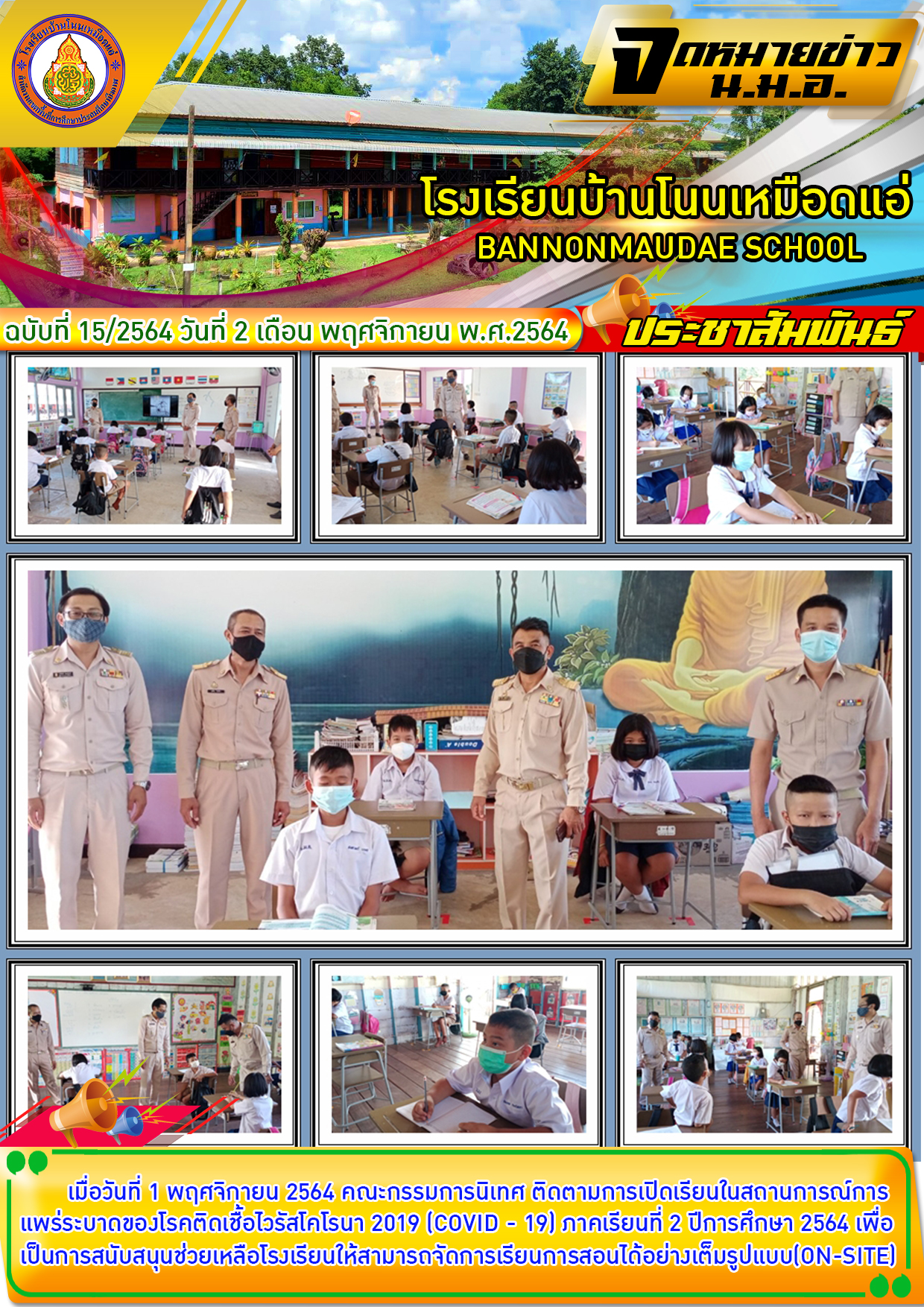 โรงเรียนบ้านโนนเหมือดแอ่ ขอประชาสัมพันธ์ จดหมายข่าว ฉบับที่ 15/2564 วันที่ 2 เดือน พฤศจิกายน พ.ศ.2564 การติดตามการเปิดเรียนฯ ภาคเรียนที่ 2 ปีการศึกษา 2564