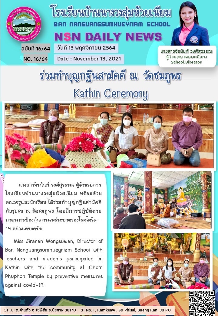 (เผยแพร่เมื่อวันที่ 16 พย 2564 19:00:40 น.) ผู้รายงาน : ธุรการโรงเรียน บ้านนางวงสุ่มห้วยเนียม