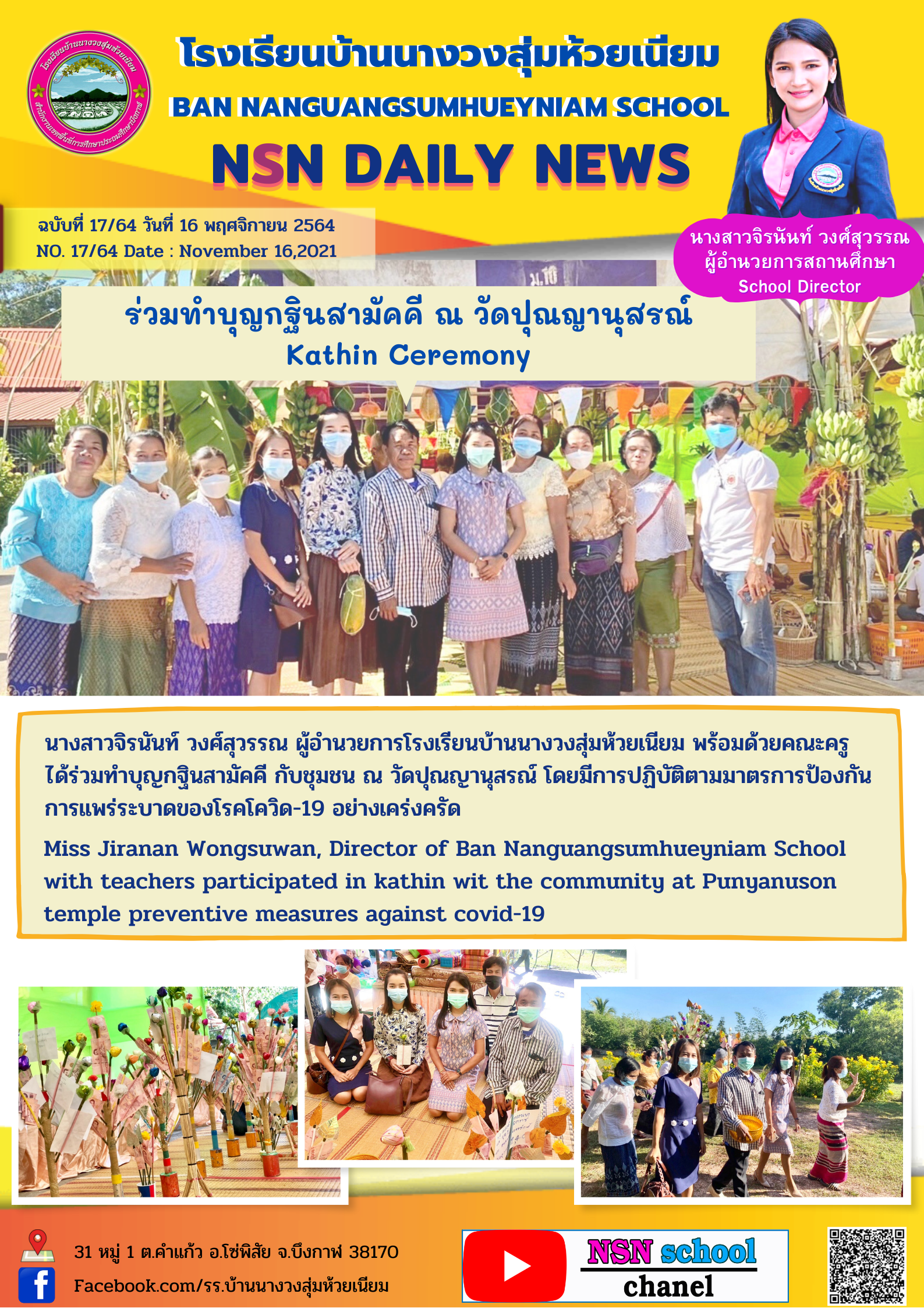 โรงเรียนบ้านนางวงสุ่มห้วยเนียม ร่วมทำบุญกฐินสามัคคี ณ วัดปุณญานุสรณ์ บ้านห้วยเนียม