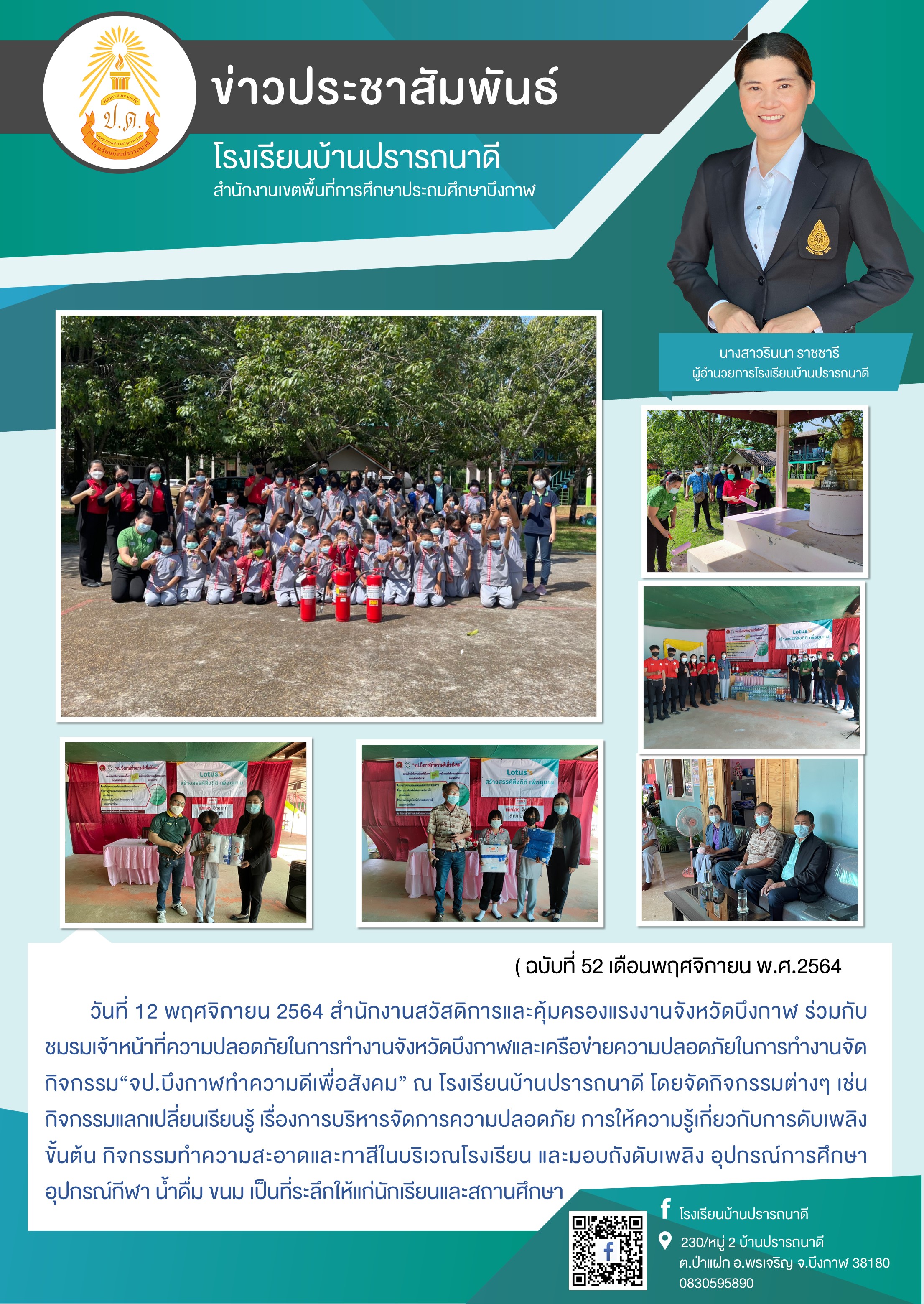 ข่าวประชาสัมพันธ์ โรงเรียนบ้านปรารถนาดี เรื่อง สำนักงานสวัสดิการและคุ้มครองแรงงานจังหวัดบึงกาฬร่วมกับ ชมรมเจ้าหน้าที่ความปลอดภัยในการทำงานจังหวัดบึงกาฬและเครือข่ายความปลอดภัยในการทำงานจัดกิจกรรม“จป.บึงกาฬทำความดีเพื่อสังคม”