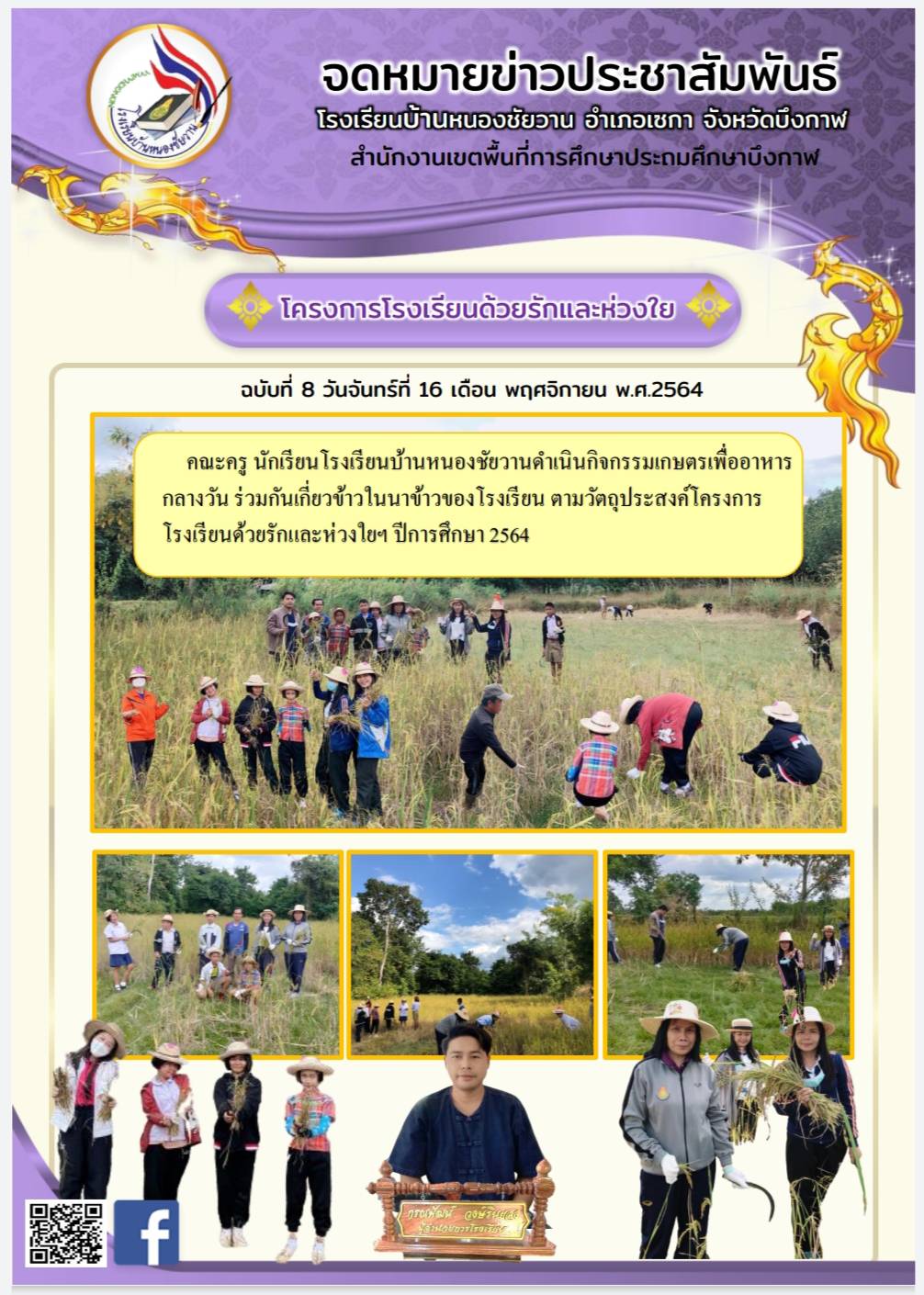 ข่าวประชาสัมพันธ์ โรงเรียนบ้านหนองชัยวาน เรื่อง การดำเนินกิจกรรมเกษตรเพื่ออาหารกลางวัน ตามวัตถุประสงค์โครงการโรงเรียนด้วยรักเเละห่วงใยฯ ปีการศึกษา ๒๕๖๔