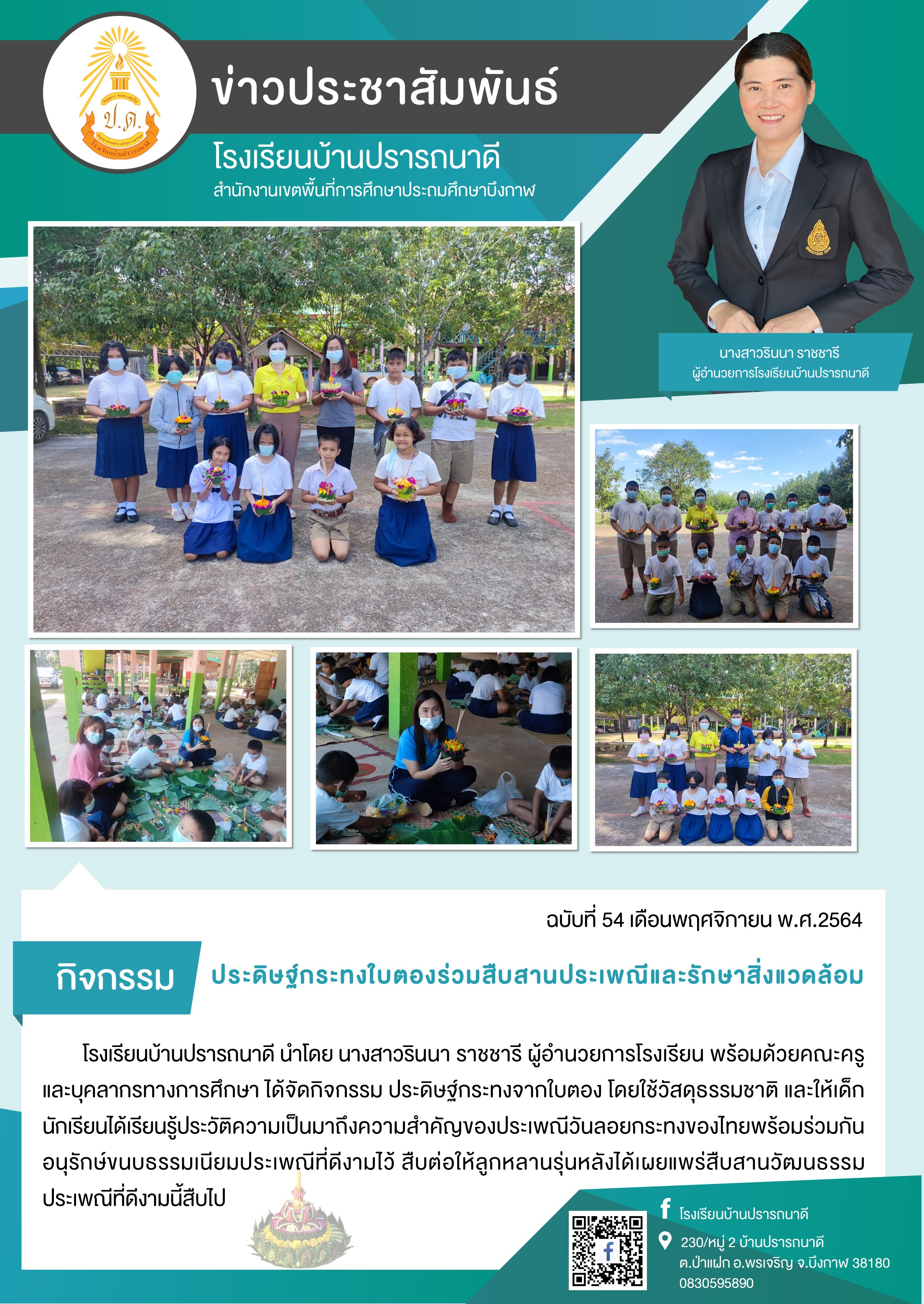 ข่าวประชาสัมพันธ์ โรงเรียนบ้านปรารถนาดี เรื่อง ประดิษฐ์กระทงใบตองร่วมสืบสานประเพณีและรักษาสิ่งแวดล้อม