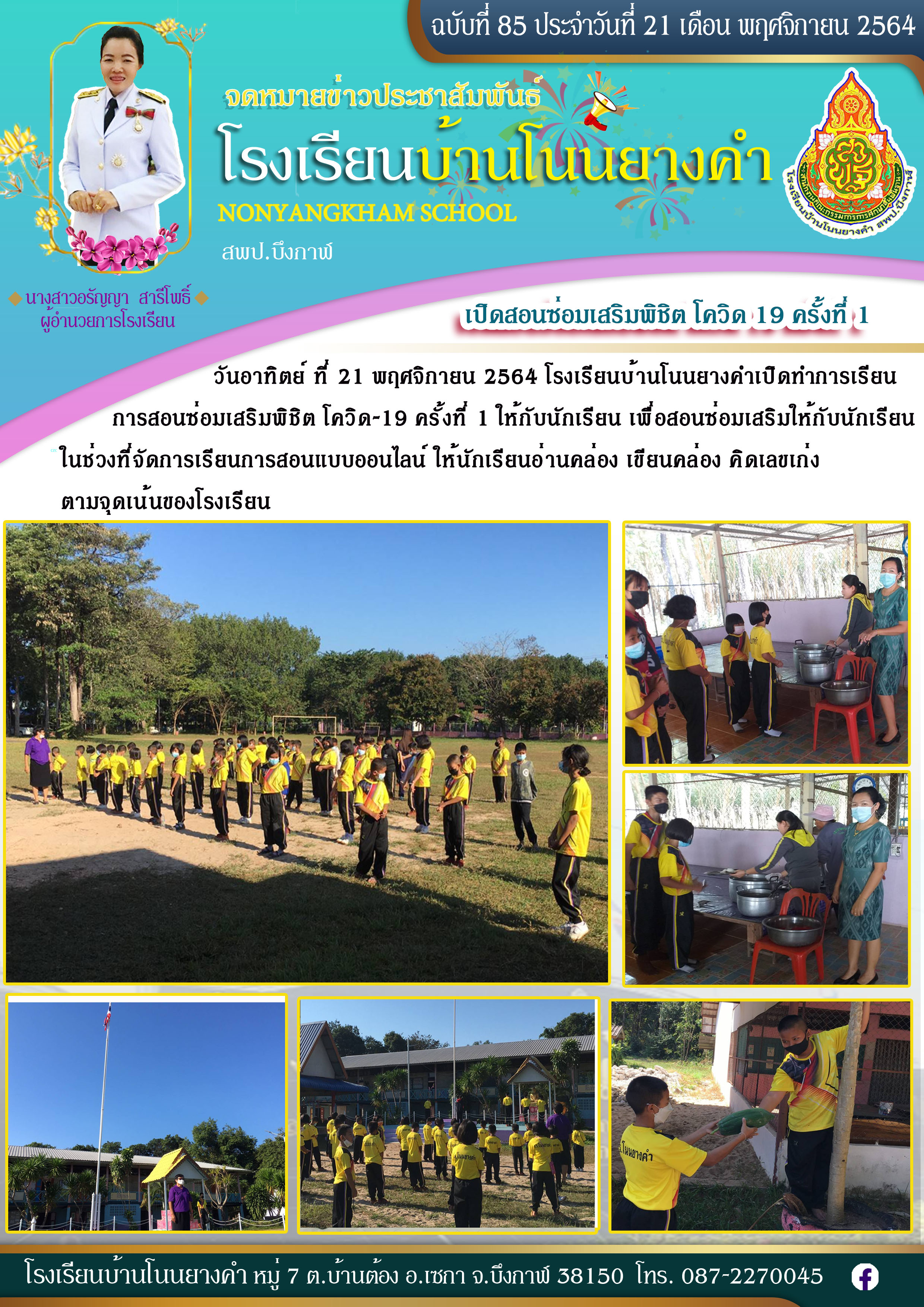 วันอาทิตย์ ที่ 21 พฤศจิกายน 2564 โรงเรียนบ้านโนนยางคำเปิดทำการเรียนการสอนซ่อมเสริมพิชิต โควิด-19 ครั้งที่ 1