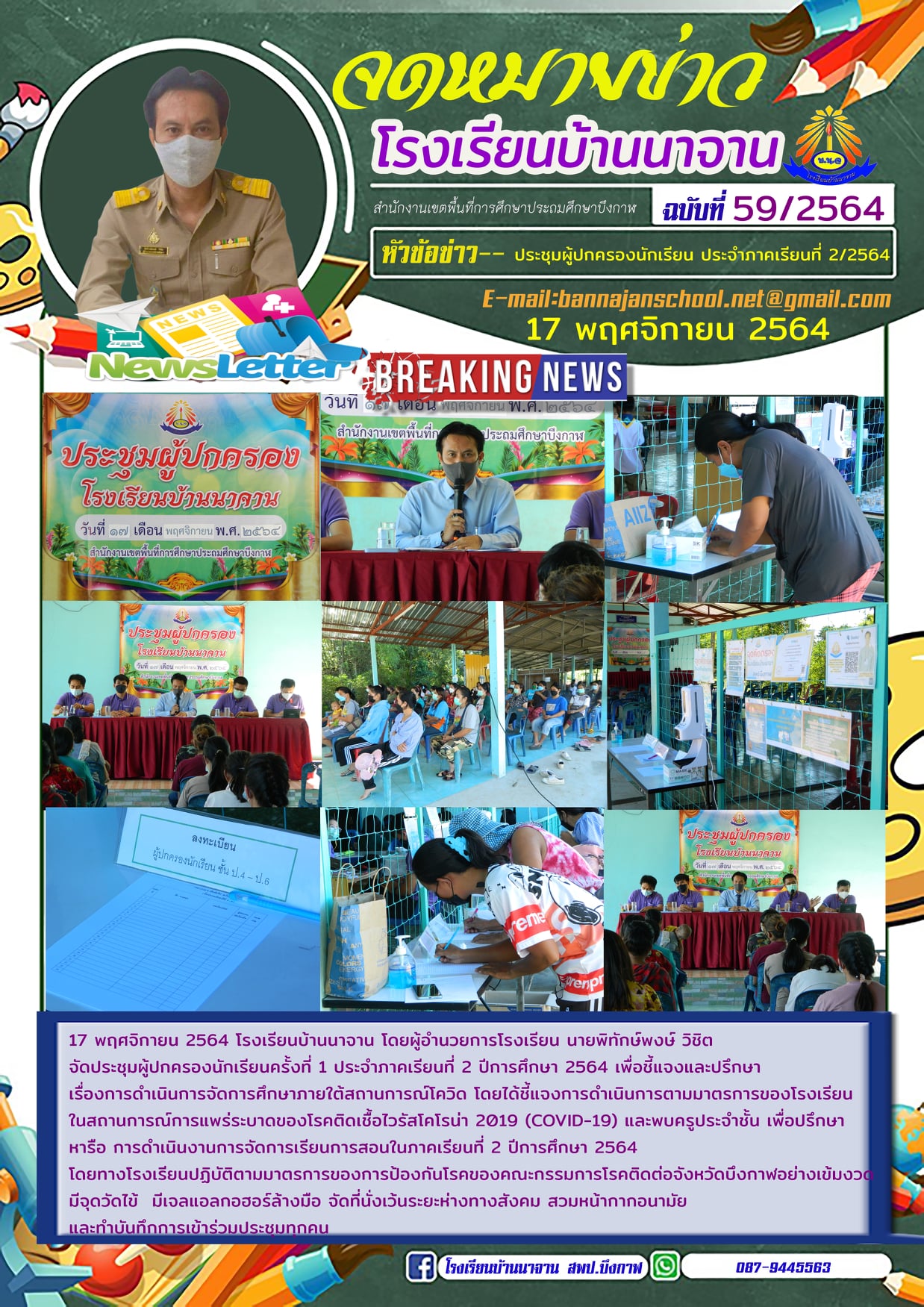 วันที่ 17 พฤศจิกายน 2564 โรงเรียนบ้านนาจาน โดยผู้อำนวยการโรงเรียน นายพิทักษ์พงษ์ วิชิต จัดประชุมผู้ปกครองนักเรียนครั้งที่ 1 ประจำภาคเรียนที่ 2 ปีการศึกษา 2564