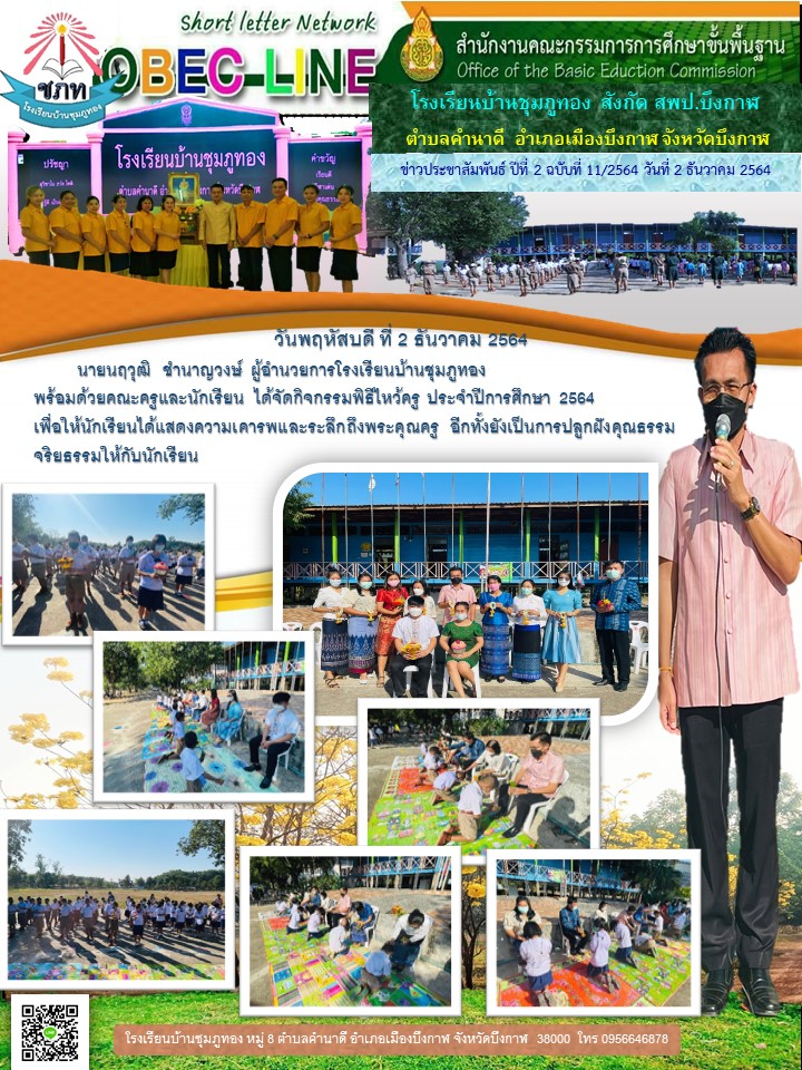 (เผยแพร่เมื่อวันที่ 9 ธค 2564 14:32:28 น.) ผู้รายงาน : ธุรการโรงเรียน บ้านชุมภูทอง
