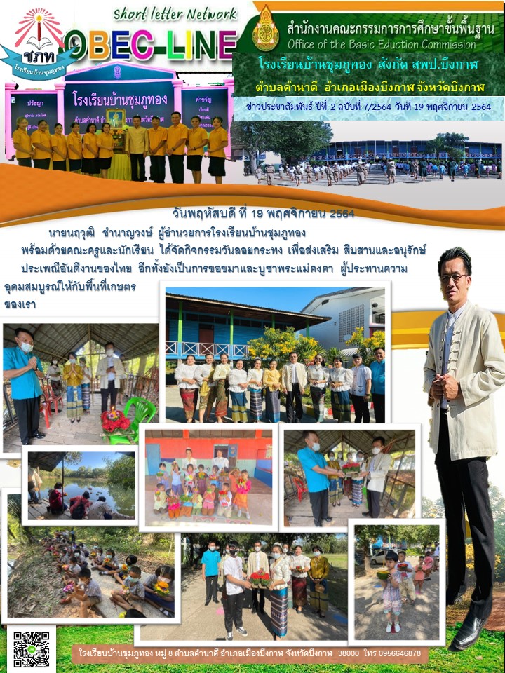 โรงเรียนบ้านชุมภูทอง นำโดย นายนฤวุฒิ ชำนาญวงษ์ ผู้อำนวยการโรงเรียนบ้านชุมภูทอง พร้อมด้วยคณะครูและบุคลากรทางการศึกษา และนักเรียน ได้จัดกิจกรรมวันลอยกระทง