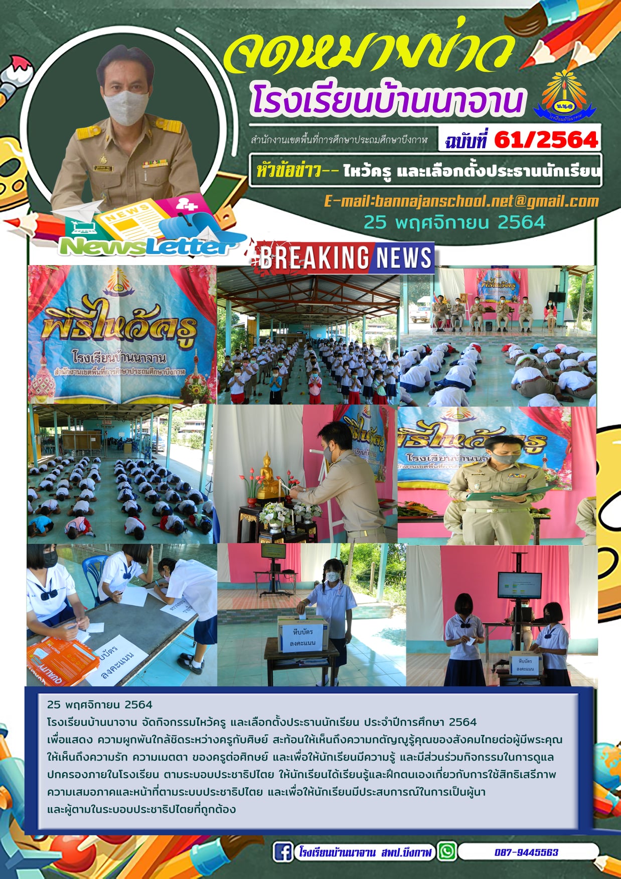 โรงเรียนบ้านนาจาน นำโดยผู้อำนวยการโรงเรียน นายพิทักษ์พงษ์ วิชิต จัดกิจกรรมไหว้ครู และเลือกตั้งประธานนักเรียน ประจำปีการศึกษา 2564