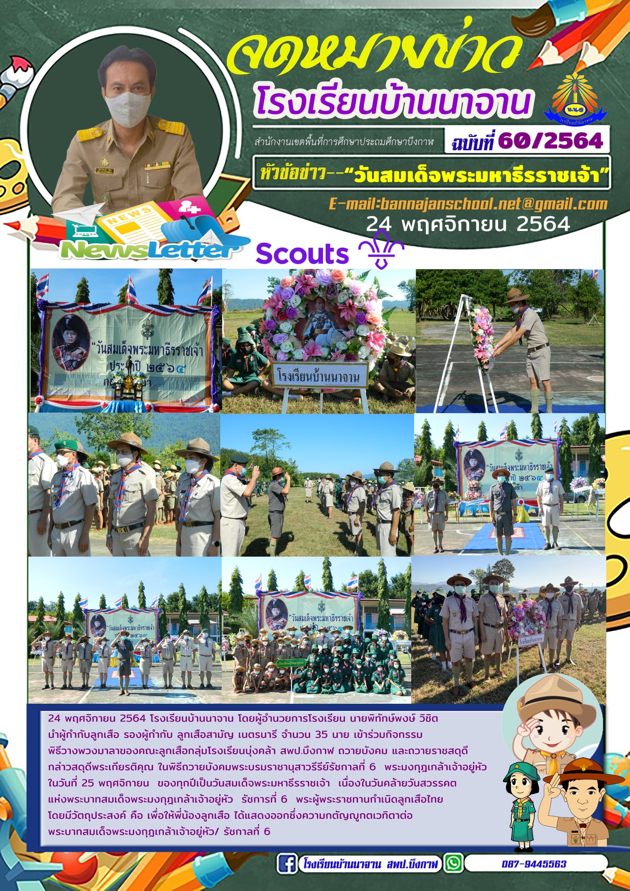 โรงเรียนบ้านนาจาน โดยผู้อำนวยการโรงเรียน นายพิทักษ์พงษ์ วิชิต นำผู้กำกับลูกเสือ รองผู้กำกับ ลูกเสือสามัญ เนตรนารี จำนวน 35 นาย เข้าร่วมกิจกรรมพิธีวางพวงมาลาของคณะลูกเสือกลุ่มโรงเรียนบุ่งคล้า