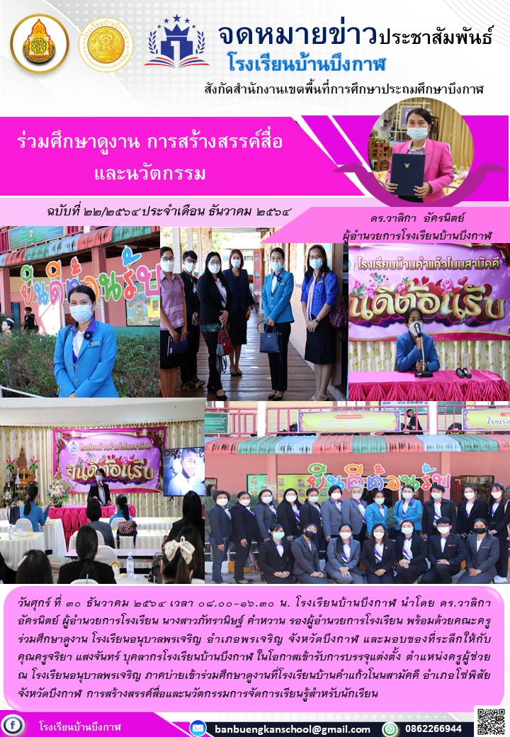 โรงเรียนบ้านบึงกาฬ ร่วมศึกษาดูงานการสร้างสื่อและนวัตกรรม วันศุกร์ที่ 30 ธันวาคม 2564 ณ โรงเรียนอนุบาลพรเจริญ