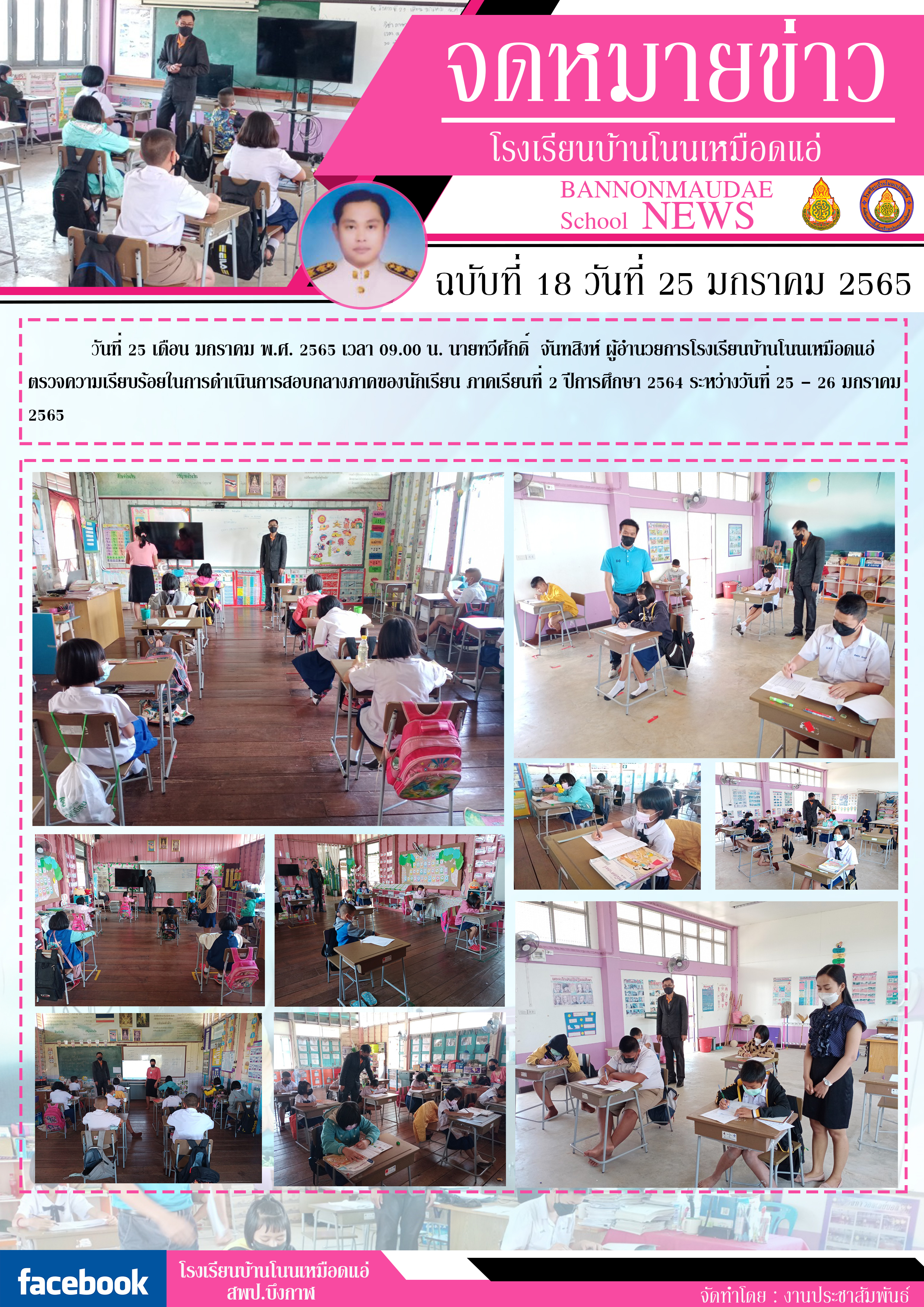 โรงเรียนบ้านโนนเหมือดแอ่ ขอประชาสัมพันธ์ จดหมายข่าว ฉบับที่ 18 วันที่ 25 เดือน มกราคม พ.ศ.2565 การสอบกลางภาคของนักเรียน ภาคเรียน 2 ปีการศึกษา 2564