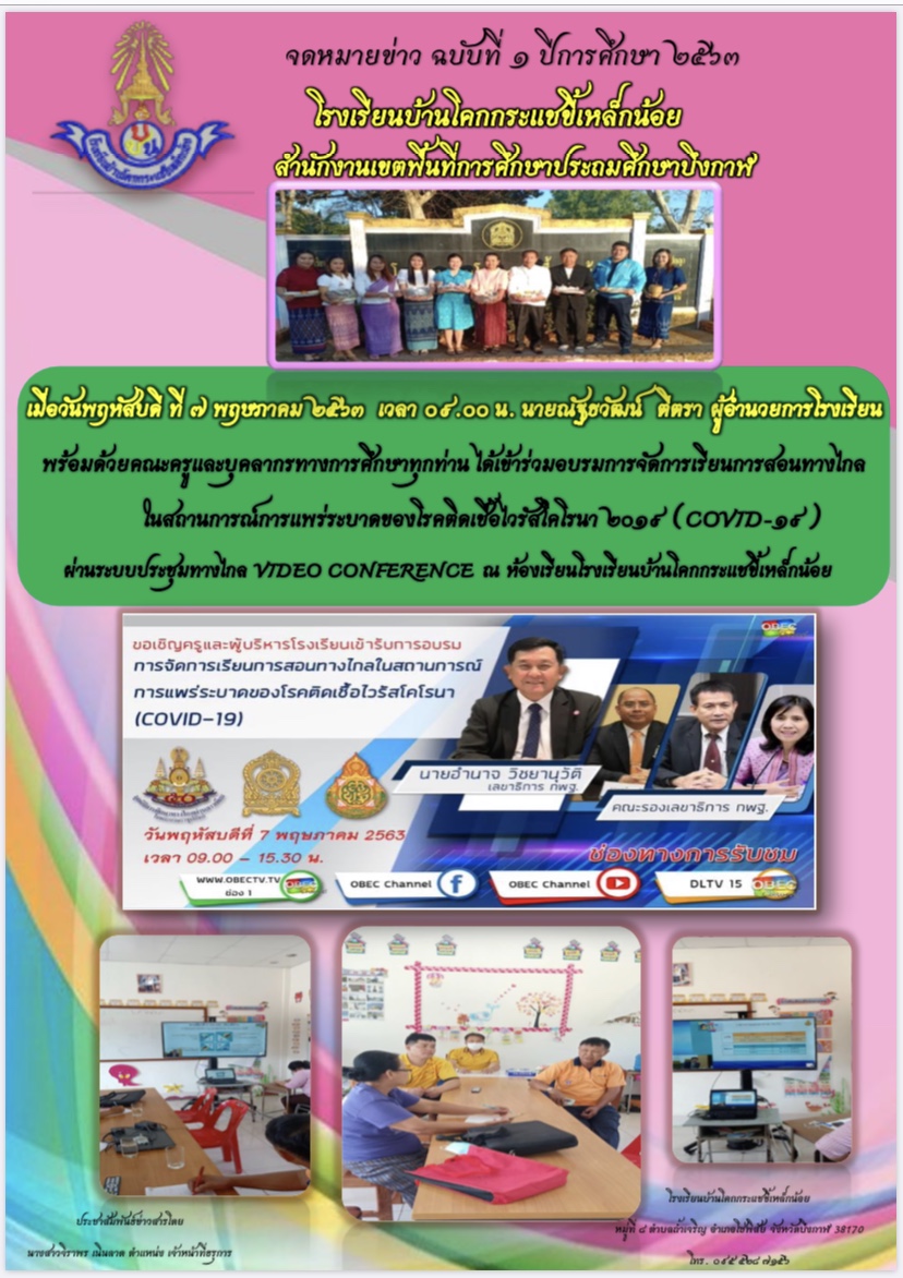 รายงานข่าว สรุปเข้าร่วมอบรมการจัดการเรียนการสอนทางไกล ในช่วงระบาดของไวรัส(โควิด-19) ผ่านระบบประชุมทางไกล Video conference โรงเรียนบ้านโคกกระแชขี้เหล็กน้อย