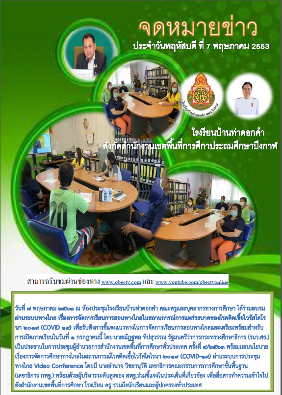 (เผยแพร่เมื่อวันที่ 8 พค 2563 13:46:43 น.) ผู้รายงาน : ธุรการโรงเรียน บ้านท่าดอกคำ