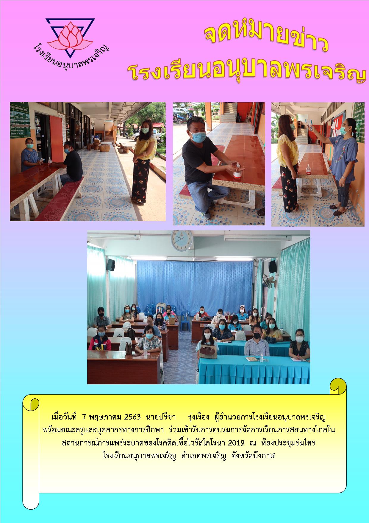 ขอส่งจดหมายข่าวการร่วมเข้ารับการอบรมการจัดการเรียนการสอนทางไกลในสถานการณ์การแพร่ระบาดของโรคติดเชื้อไวรัสโคโรนา 2019 โรงเรียนอนุบาลพรเจริญ