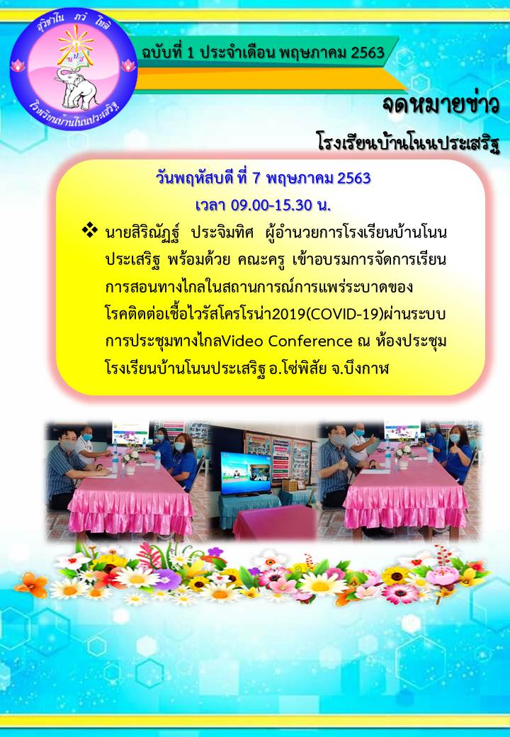 รายงานข่าว สรุปเข้าร่วมอบรมการจัดการเรียนการสอนทางไกล ในช่วงระบาดของไวรัส(โควิด-19) ผ่านระบบประชุมทางไกล Video conference โรงเรียนบ้านโนนประเสริฐ