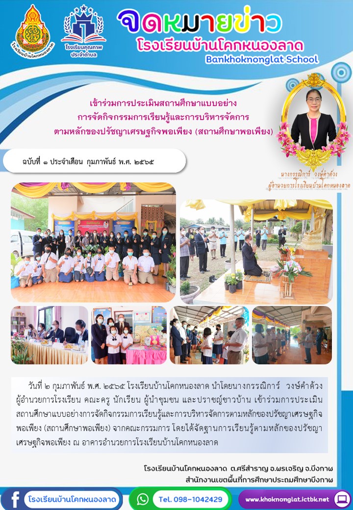 โรงเรียนบ้านโคกหนองลาด ประชาสัมพันธ์ เรื่องการประเมินสถานศึกษาแบบอย่างการจัดการเรียนรู้บริหารจัดการตามหลักปรัชญา เศรษฐกิจพอเพียง (สถานศึกษาพอเพียง)