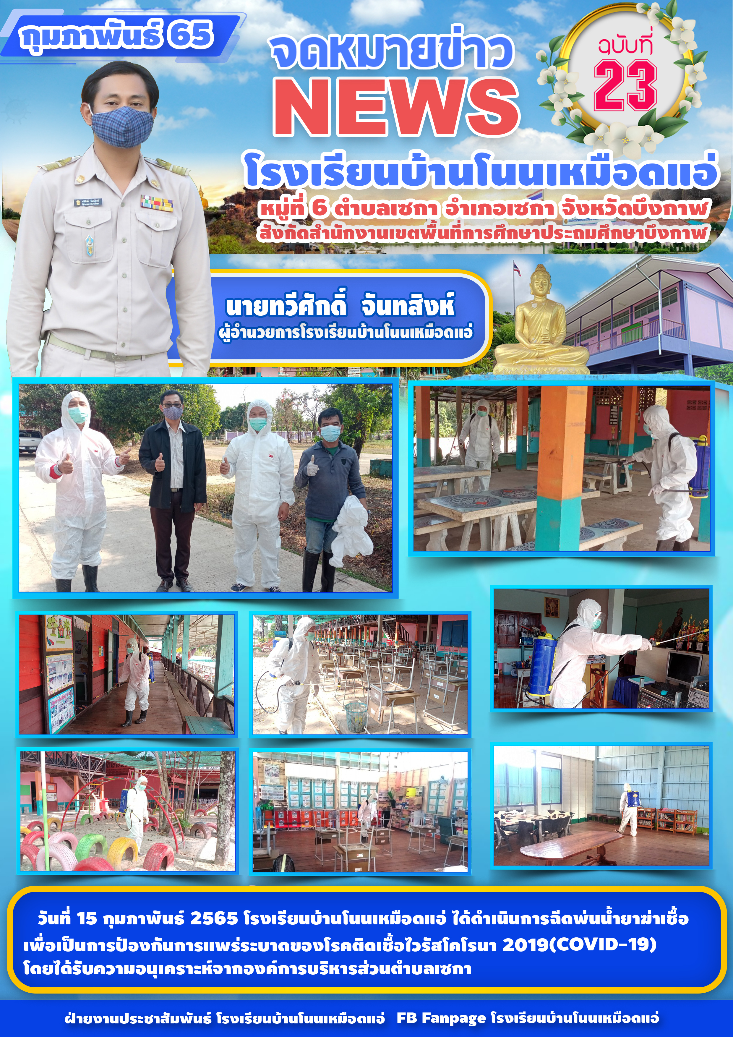โรงเรียนบ้านโนนเหมือดแอ่ ขอประชาสัมพันธ์จดหมายข่าว ฉบับที่ 23 วันที่ 20 เดือน กุมภาพันธ์ พ.ศ.2565 การฉีดพ่นน้ำยาทำความสะอาดและฆ่าเชื้อไวรัสโคโรนา 2019 (COVID – 19)