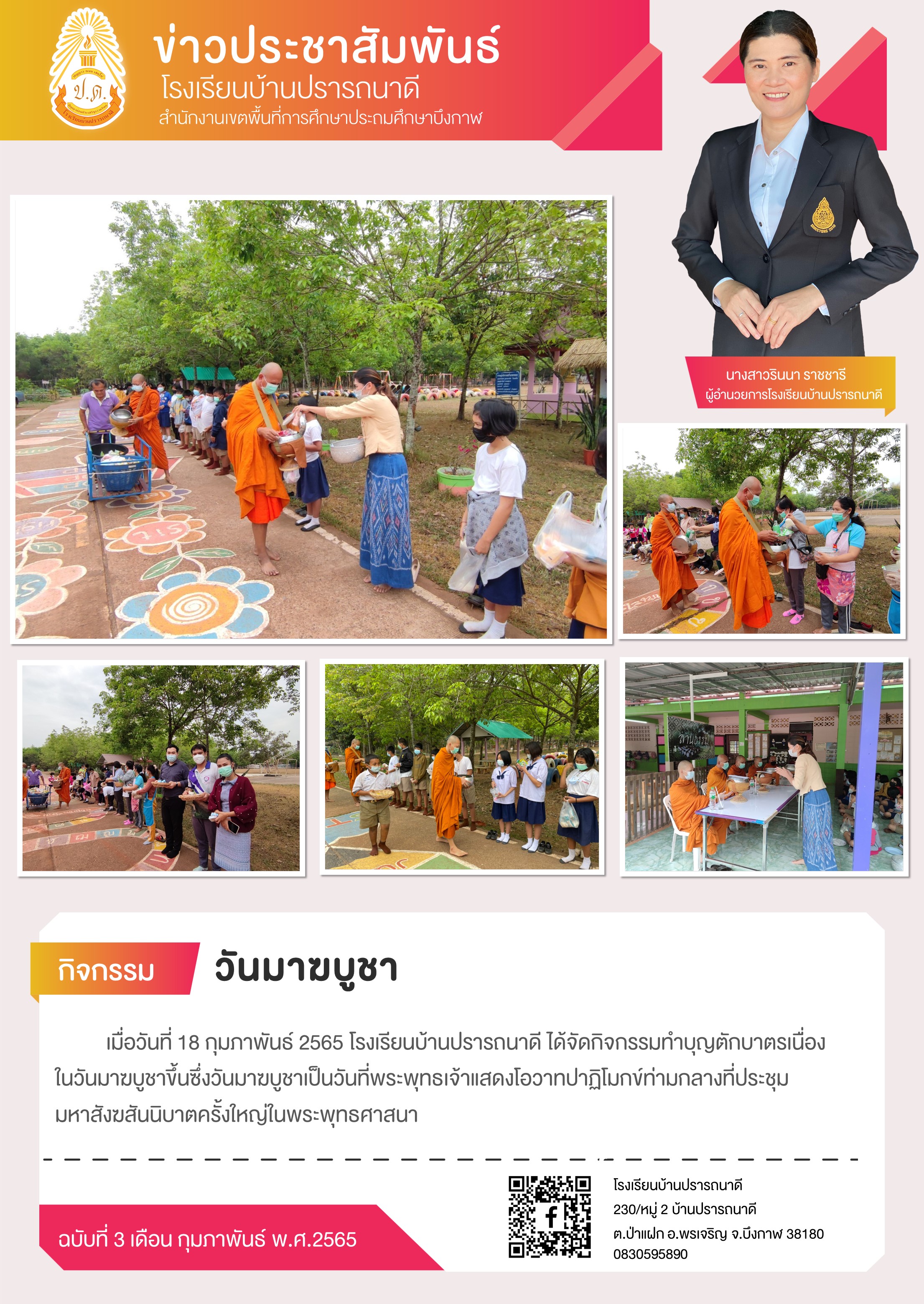 ข่าวประชาสัมพันธ์ โรงเรียนบ้านปรารถนาดี เรื่อง การจัดกิจกรรมทำบุญตักบาตรเนื่องในวันมาฆบูชา