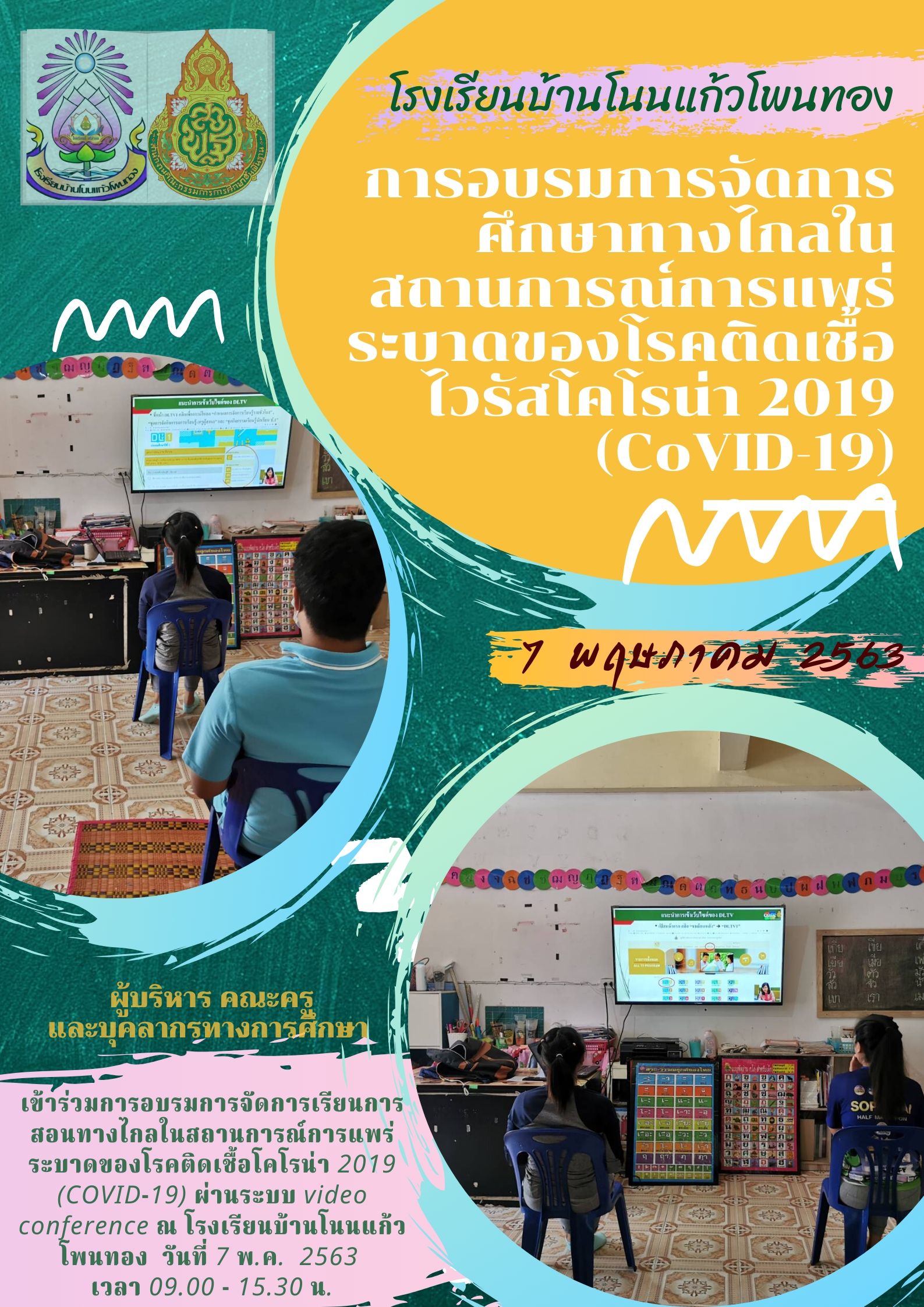 รายงานการเข้าร่วมอบรมการจัดการเรียนการสอนทางไกลในสถานการณ์การแพร่ระบาดของโรคติดเชื้อ โคโรนา 2019 (covid-19) โรงเรียนชุมชนบ้านตูม