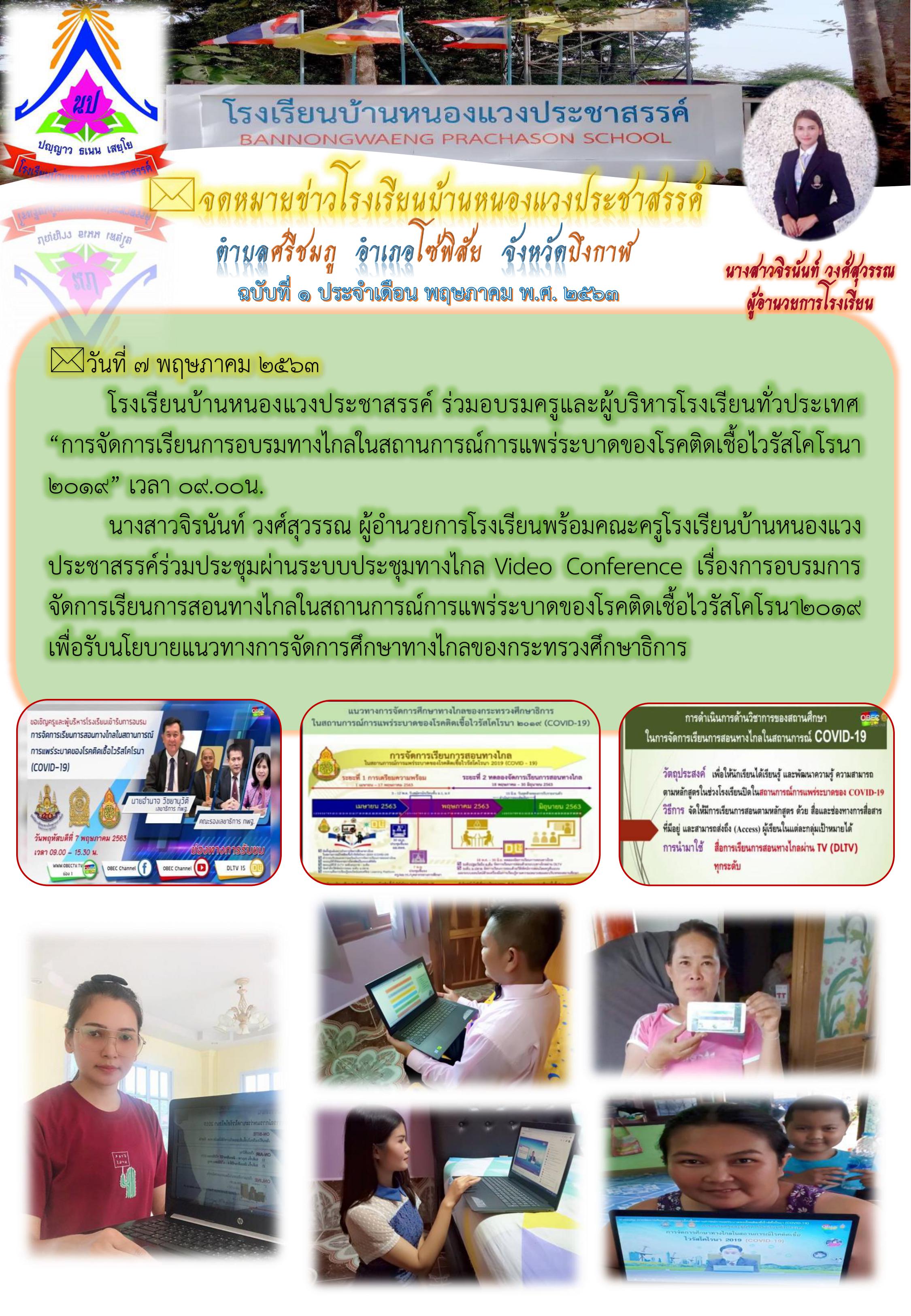 จดหมายข่าวเรื่องการอบรมการจัดการเรียนการสอนทางไกลในสถานการณ์การแพร่ระบาดของโรคติดเชื้อไวรัสโคโรนา2019โรงเรียนบ้านหนองแวงประชาสรรค์