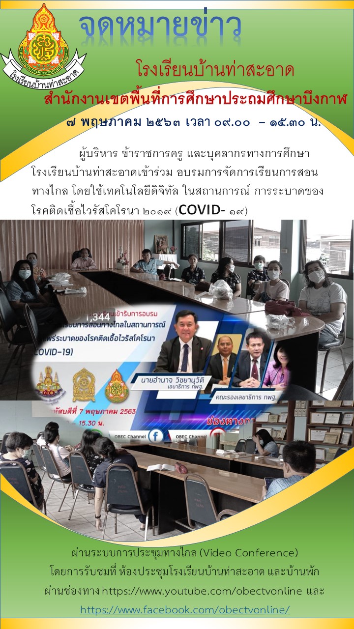 อบรมการจัดการเรียนการสอนทางไกลโดยใช้เทคโนโลยีดิจิทัล ในสถานการณ์ การระบาดของโรคติดเชื้อไวรัสโคโรนา ๒๐๑๙ (COVID- ๑๙) รร.บ้านท่าสะอาด