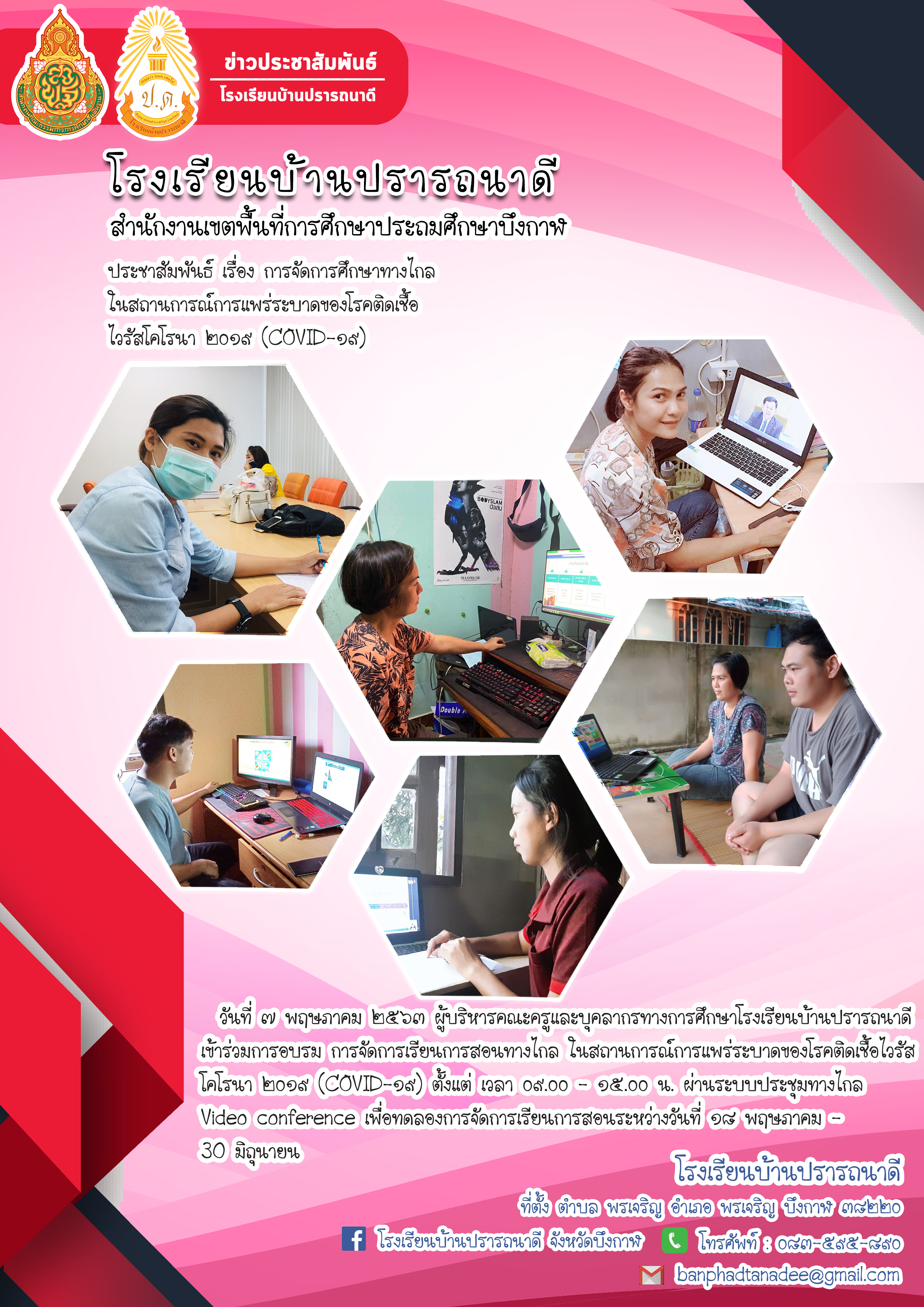 สรุปการอบรมทางจัดการเรียนการสอนทางไกลในสถานการณ์การแพร่ระบาดของโรคติดเชื้อไวรัสโคโรนา 2019 ผ่านระบบการประชุมทางไกล Video conference โรงเรียนบ้านปรารถนาดี