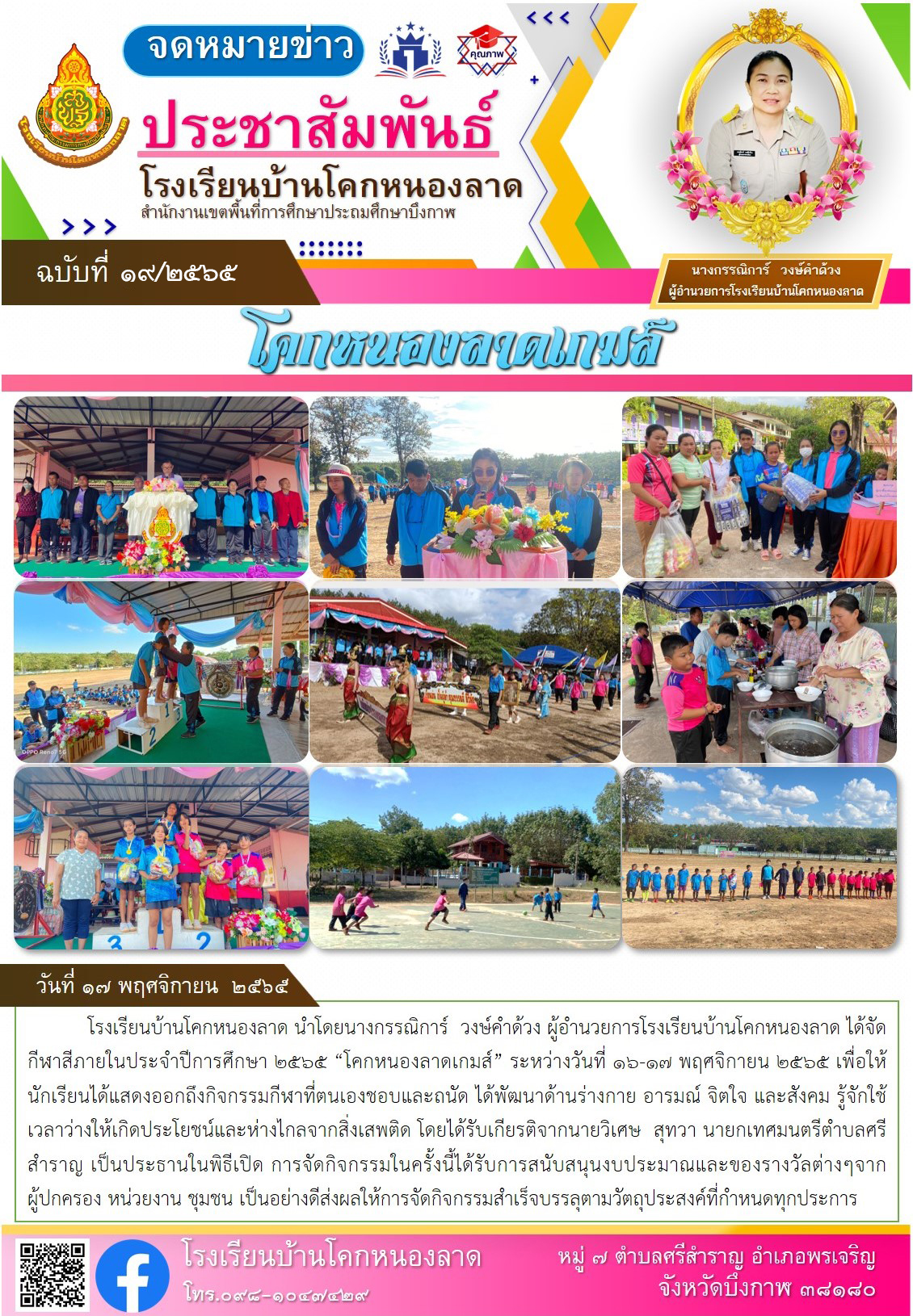 โรงเรียนบ้านโคกหนองลาด ประชาสัมพันธ์ การแข่งขันกีฬาภายในโรงเรียน ระหว่างวันที่ 16-17 พฤศจิกายน 2565