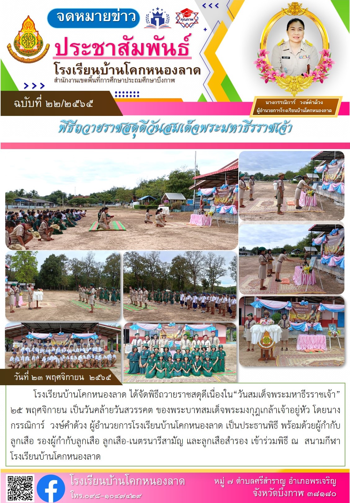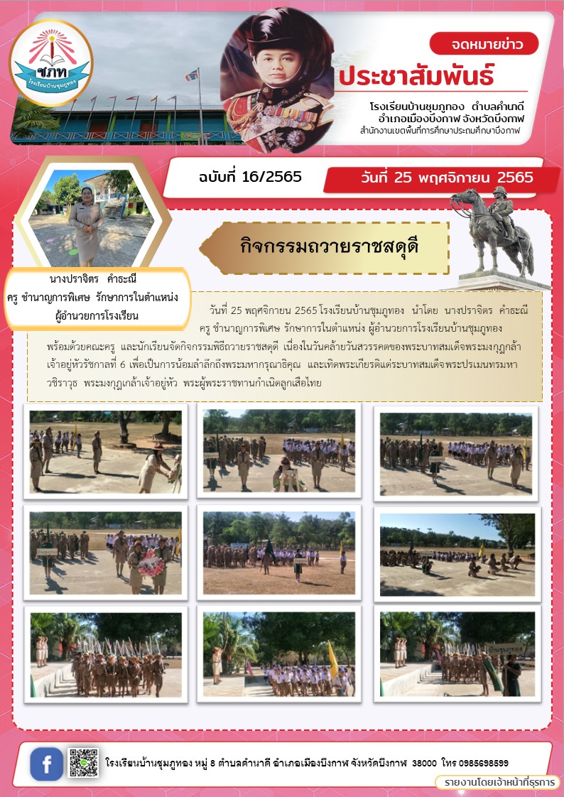 โรงเรียนบ้านโคกหนองลาดประชาสัมพันธ์กาาจัดกิจกรรม วันสมเด็จมหาธีรราชเจ้า ประจำปี 2565 วันที่ 25 พฤศจิกายน 2565