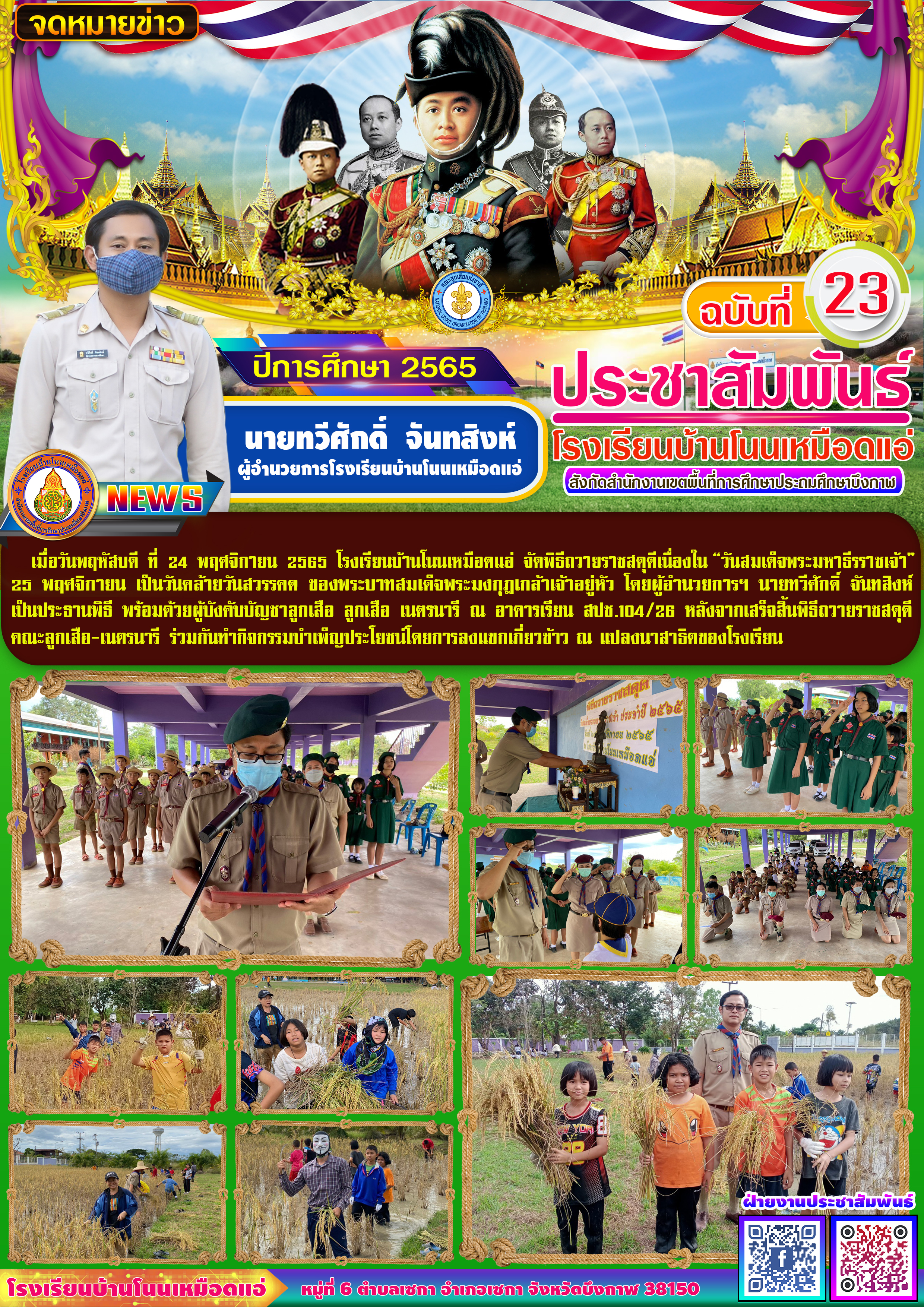 โรงเรียนบ้านโนนเหมือดแอ่ ขอประชาสัมพันธ์จดหมายข่าว ฉบับที่ 23 ปีการศึกษา 2565 พิธีถวายราชสดุดีเนื่องใน“วันสมเด็จพระมหาธีรราชเจ้า” ประจำปี 2565