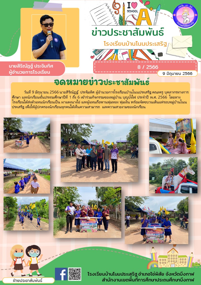 จดหมายข่าวประชาสัมพันธ์ โรงเรียนบ้านโนนประเเสริฐ แห่บุญบั้งไฟ ประจำปี 2566