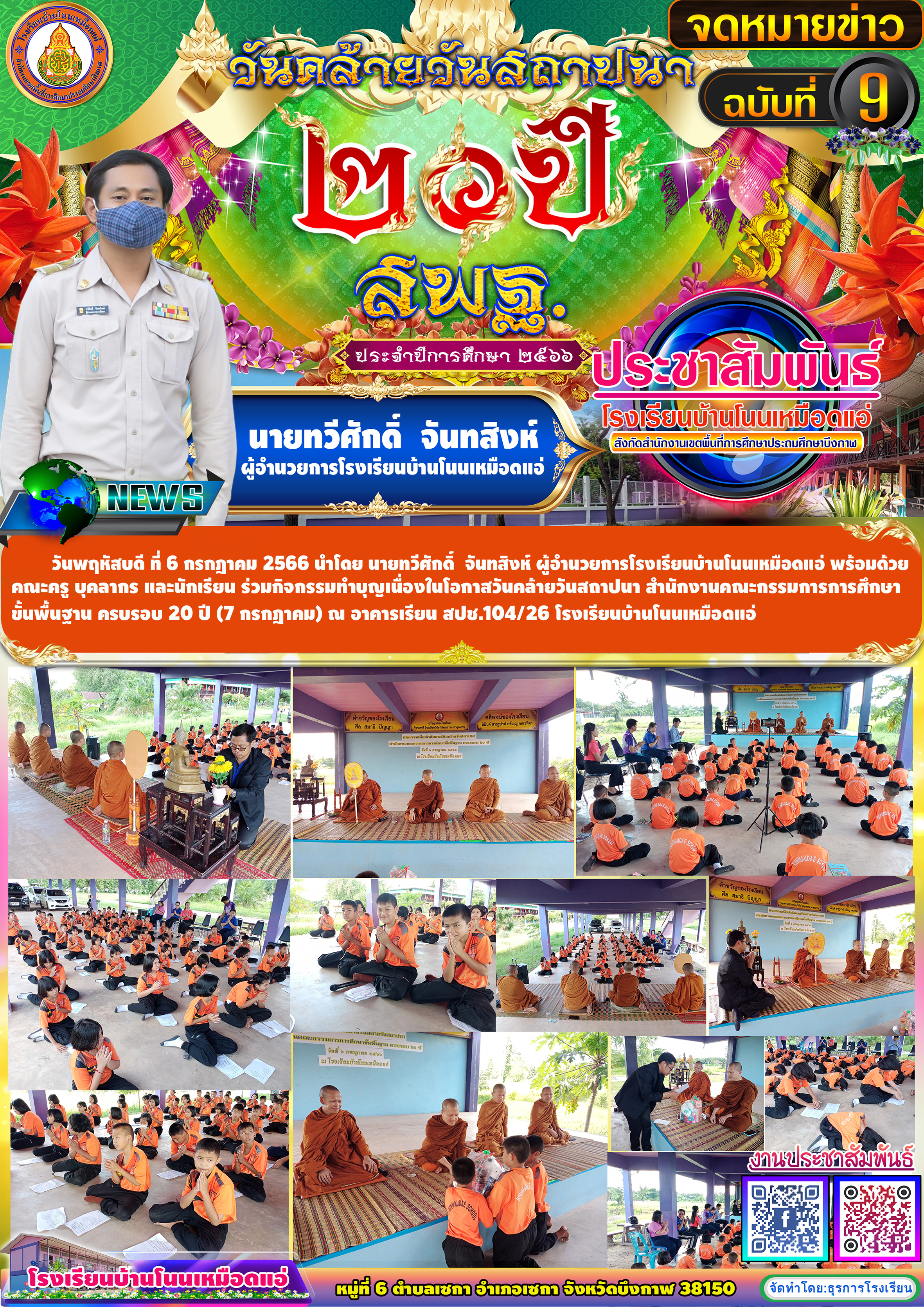 โรงเรียนบ้านโนนเหมือดแอ่ ขอประชาสัมพันธ์จดหมายข่าว ฉบับที่ 9 ปีการศึกษา 2566 กิจกรรมทำบุญเนื่องในโอกาสวันคล้ายวันสถาปนา สำนักงานคณะกรรมการการศึกษาขั้นพื้นฐาน ครบรอบ 20 ปี (7 กรกฎาคม)