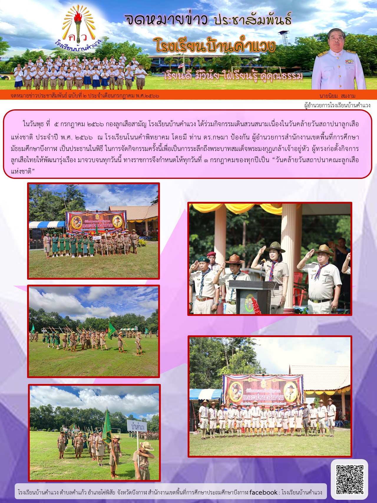 โรงเรียนบ้านคำแวงเข้าร่วมกิจกรรมเดินสวนสนามเนื่องในวันคล้ายวันสถาปนาลูกเสือแห่งชาติ ประจำปี พ.ศ. ๒๕๖๖ ณ โรงเรียนโนนคำพิทยาคม