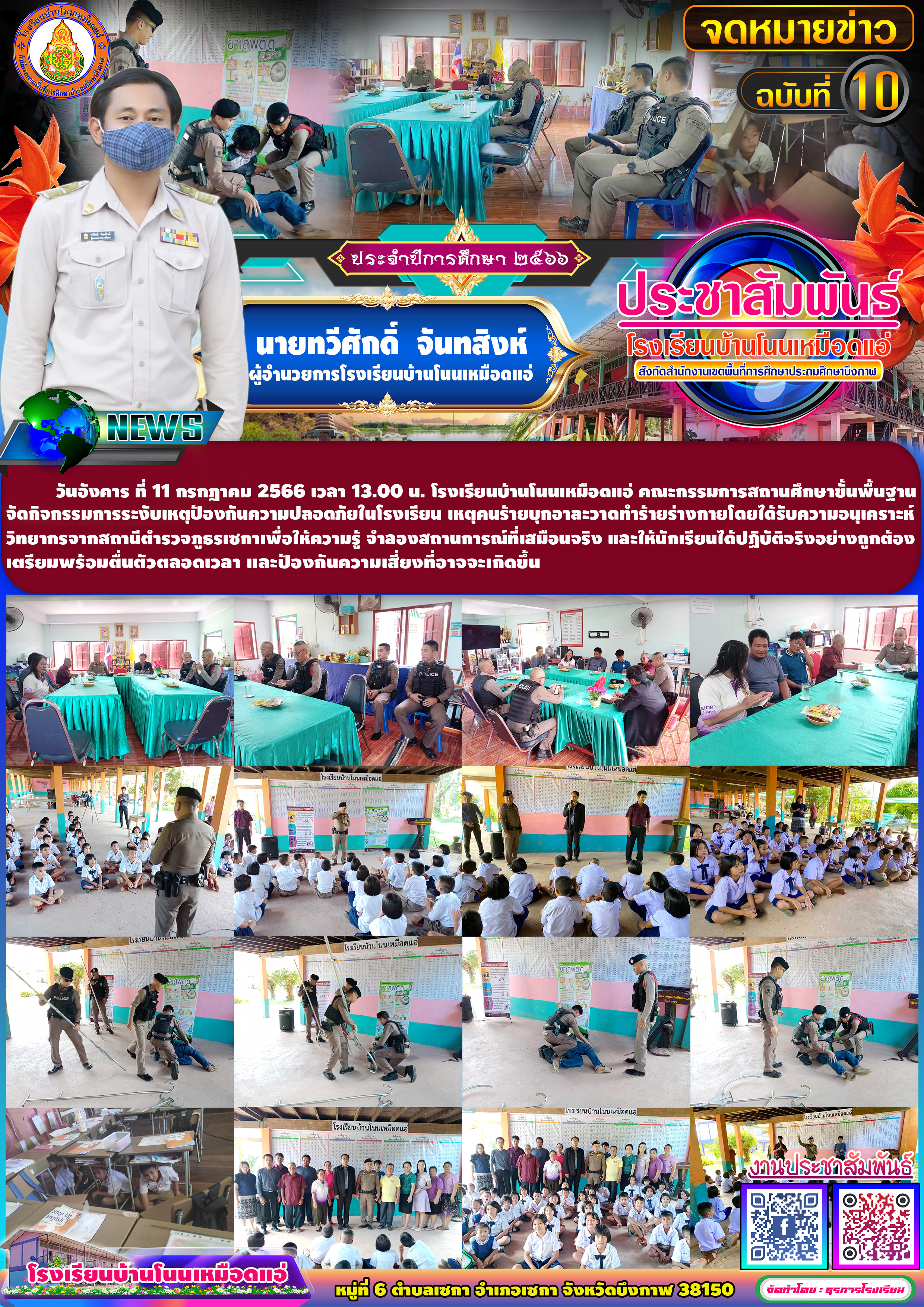 โรงเรียนบ้านโนนเหมือดแอ่ ขอประชาสัมพันธ์จดหมายข่าว ฉบับที่ 10 ปีการศึกษา 2566 กิจกรรมการระงับเหตุป้องกันความปลอดภัยในโรงเรียน เหตุคนร้ายบุกอาละวาดทำร้ายร่างกาย
