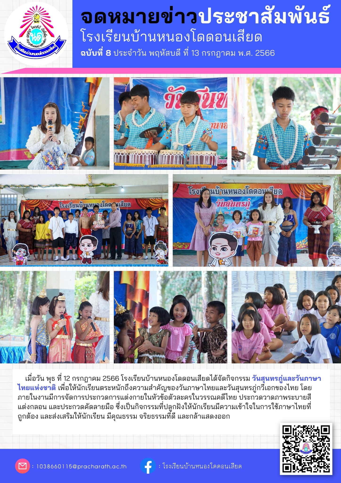 จดหมายข่าวประชาสัมพันธ์การดำเนินงานจัดกิจกรรมวันสุนทรภู่และวันภาษาไทย ประจำปีการศึกษา ๒๕๖๖ ของโรงเรียนบ้านหนองโดดอนเสียด