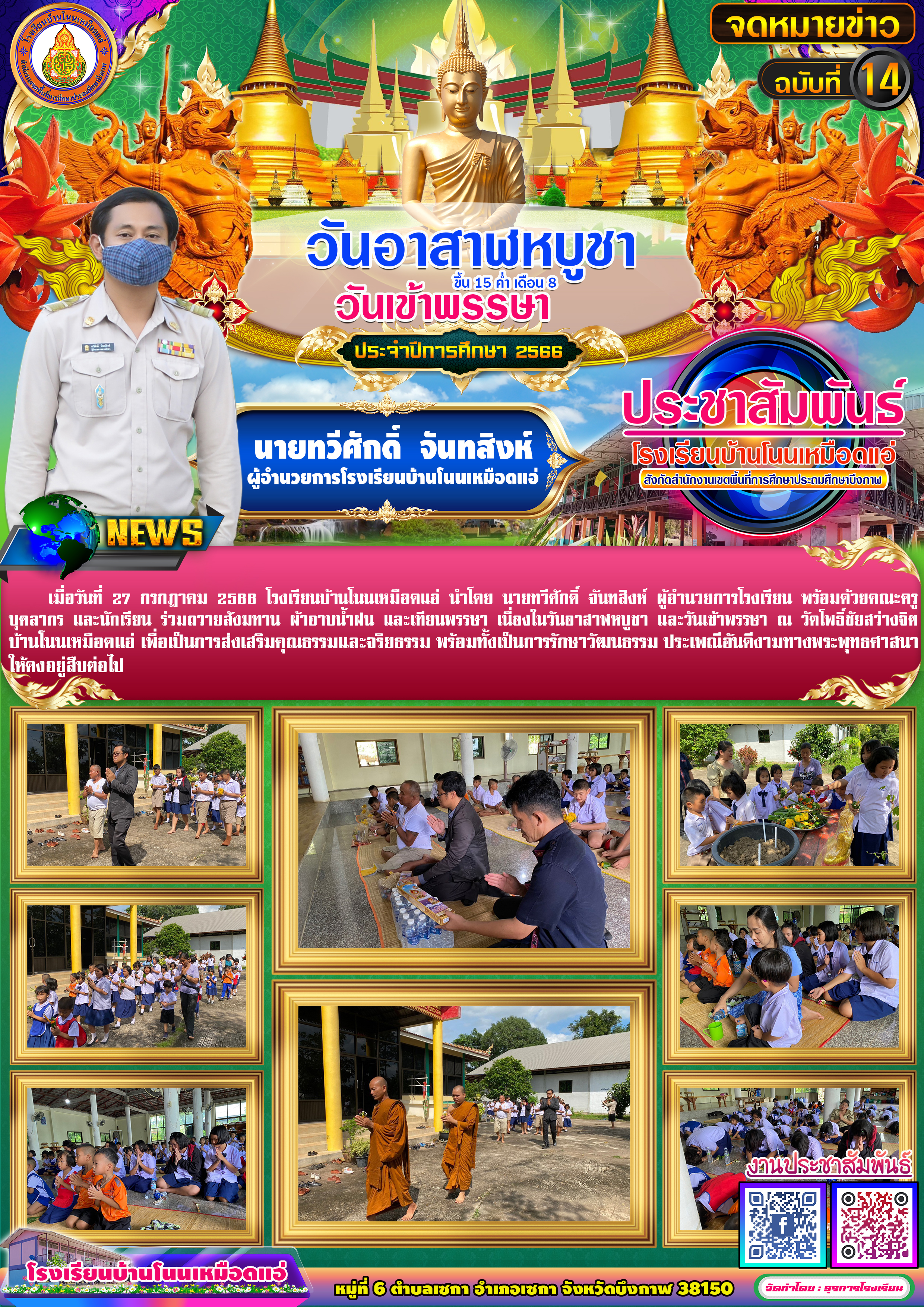 โรงเรียนบ้านโนนเหมือดแอ่ ขอประชาสัมพันธ์จดหมายข่าว ฉบับที่ 14 ปีการศึกษา 2566 กิจกรรมวันอาสาฬหบูชาและวันเข้าพรรษา ประจำปี 2566