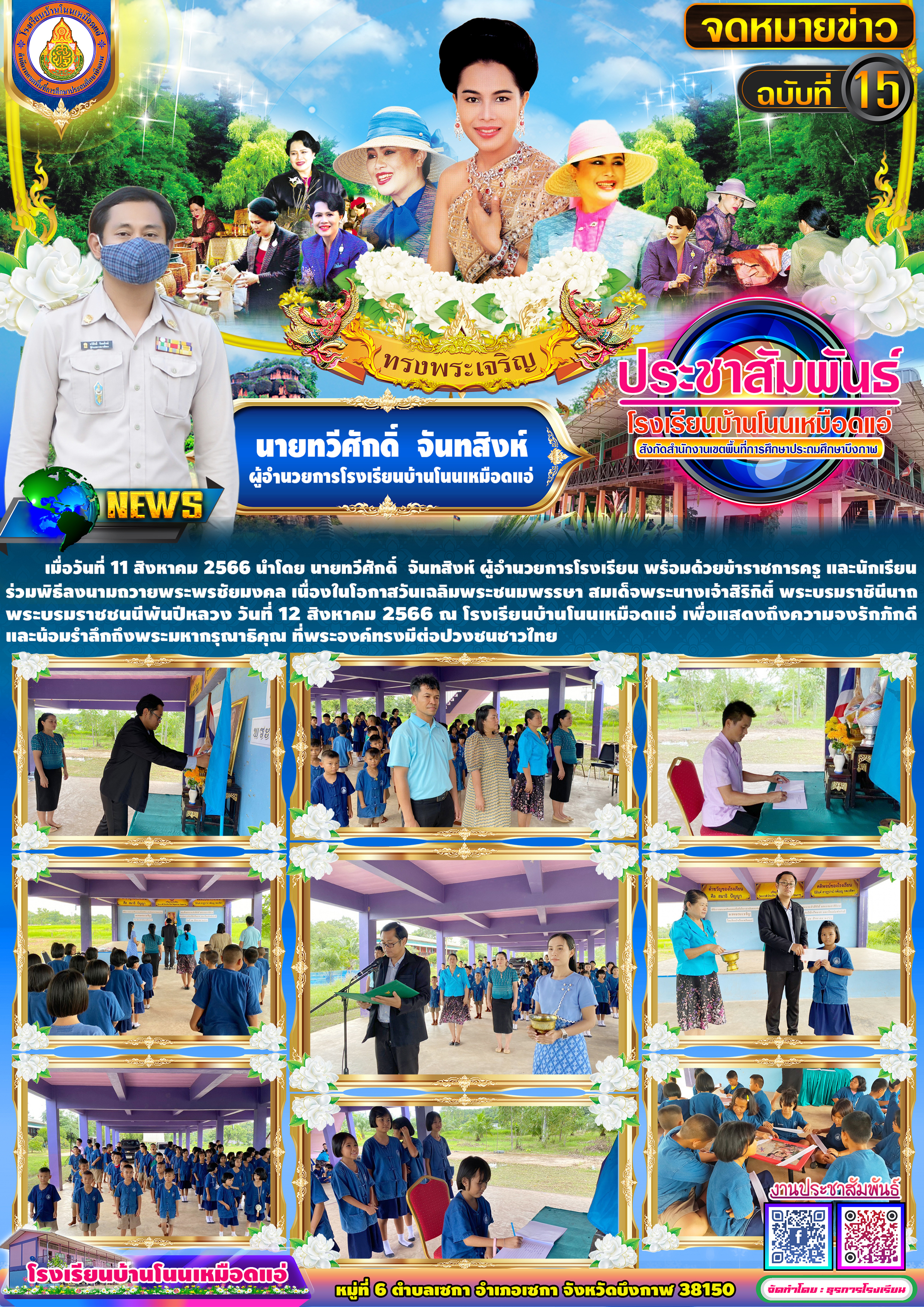 โรงเรียนบ้านโนนเหมือดแอ่ ขอประชาสัมพันธ์จดหมายข่าว ฉบับที่ 15 ปีการศึกษา 2566 พิธีลงนามถวายพระพรชัยมงคล เนื่องในโอกาสวันเฉลิมพระชนมพรรษา สมเด็จพระนางเจ้าสิริกิติ์ พระบรมราชินีนาถ พระบรมราชชนนีพันปีหลวง วันที่ 12 สิงหาคม 2566