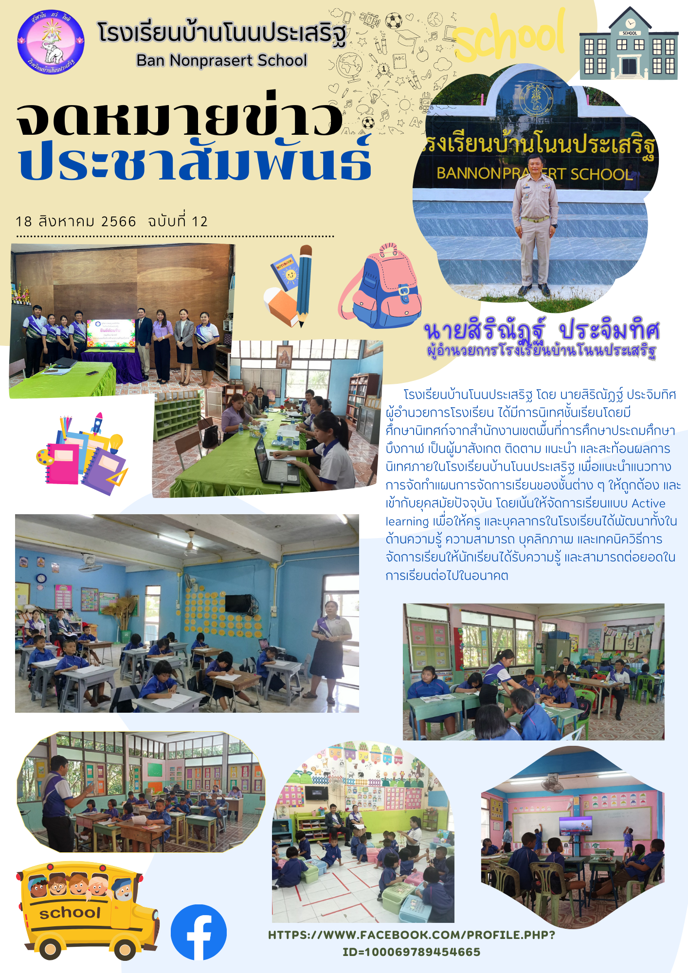 จดหมายข่าวประชาสัมพันธ์โรงเรียนบ้านโนนประเสริฐ ฉบับที่ 12/2566 เรื่อง การนิเทศชั้นเรียนจากศึกษานิเทศก์สำนักงานเขตพื้นที่การศึกษาประถมศึกษาบึงกาฬ