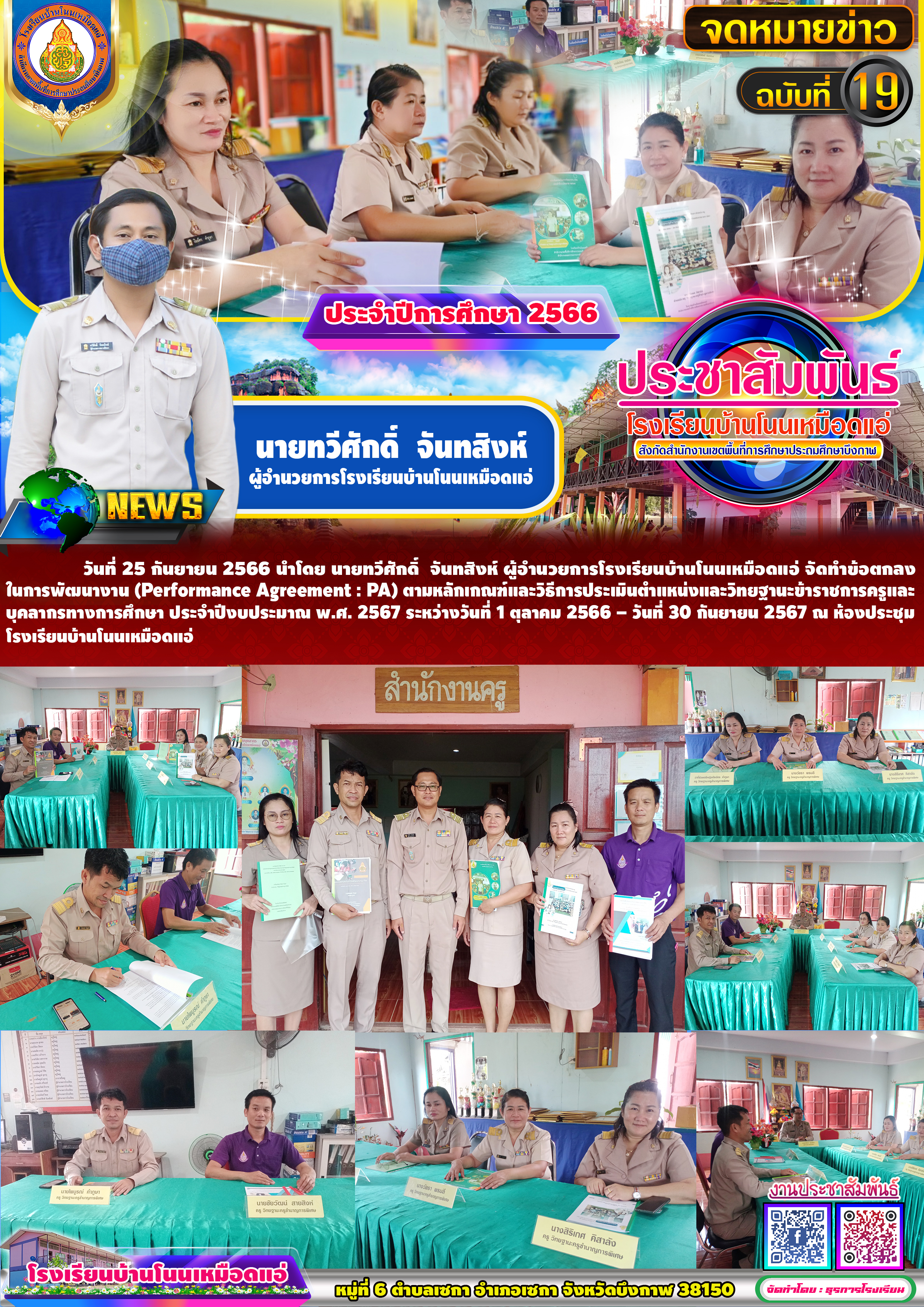 โรงเรียนบ้านโนนเหมือดแอ่ ขอประชาสัมพันธ์จดหมายข่าว ฉบับที่ 19 ปีการศึกษา 2566 การประเมินผลการปฏิบัติงานตามข้อตกลงในการพัฒนางาน (Performance Agreement : PA) สำหรับข้าราชการครูและบุคลากรทางการศึกษา ประจำปีงบประมาณ พ.ศ. 2567