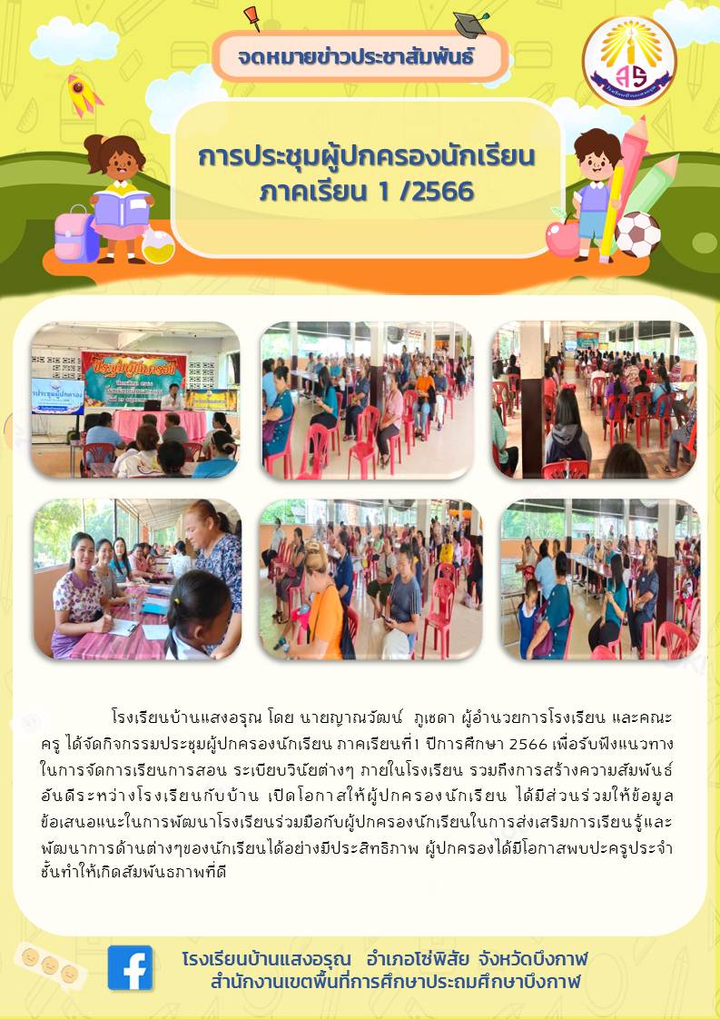 (เผยแพร่เมื่อวันที่ 26 กย 2566 13:37:29 น.) ผู้รายงาน : ธุรการโรงเรียน บ้านแสงอรุณ