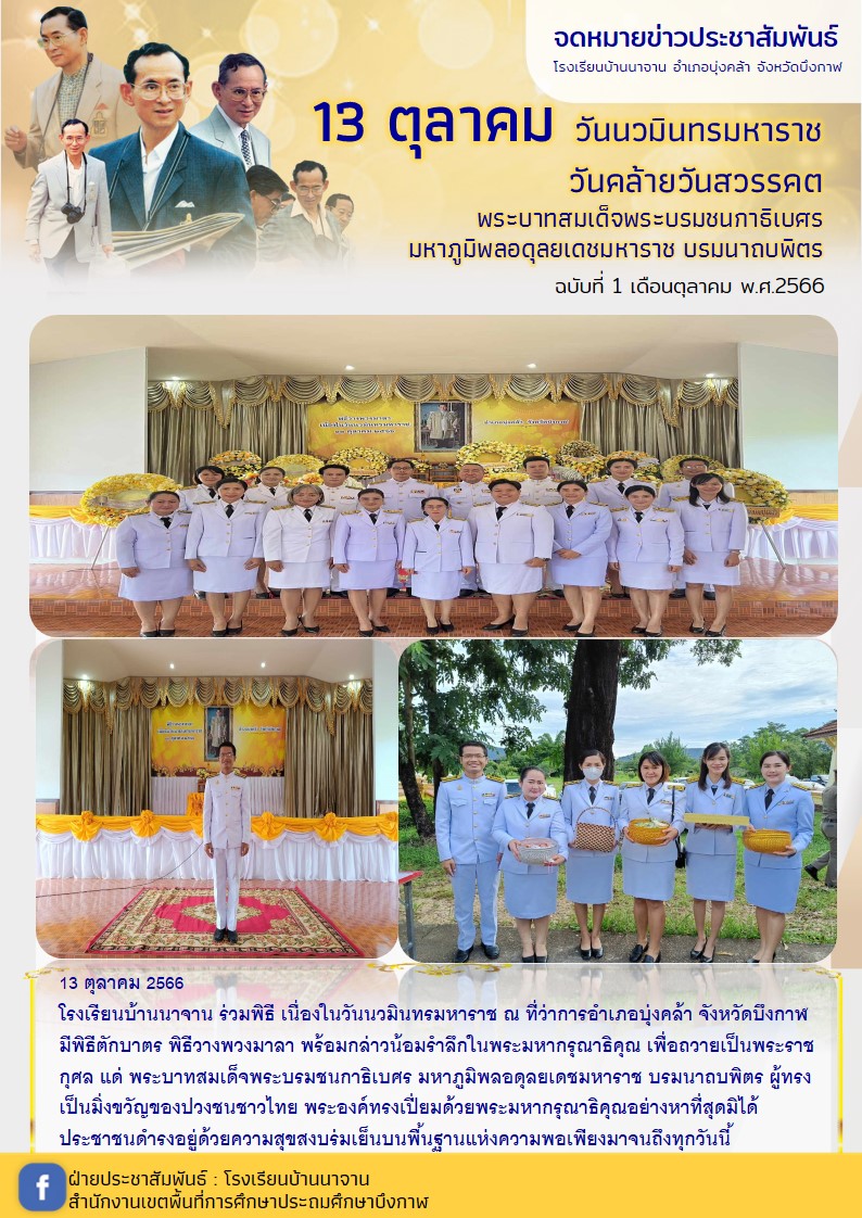 โรงเรียนบ้านนาจาน ร่วมพิธี เนื่องในวันนวมินทรมหาราช 13 ตุลาคม 2566