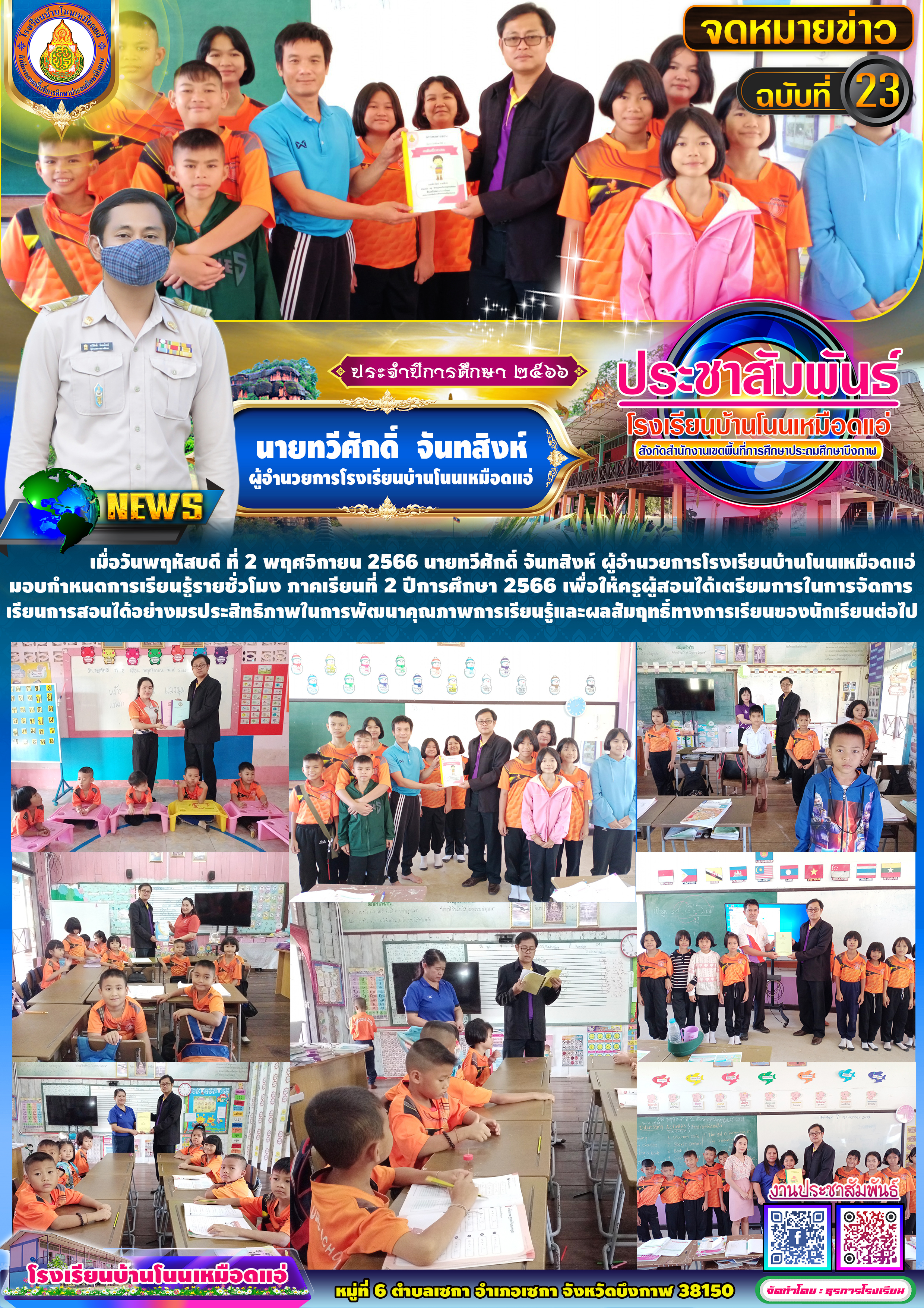 โรงเรียนบ้านโนนเหมือดแอ่ ขอประชาสัมพันธ์จดหมายข่าว ฉบับที่ 23 ปีการศึกษา 2566 มอบกำหนดการเรียนรู้รายชั่วโมง ภาคเรียนที่ 2 ปีการศึกษา 2566