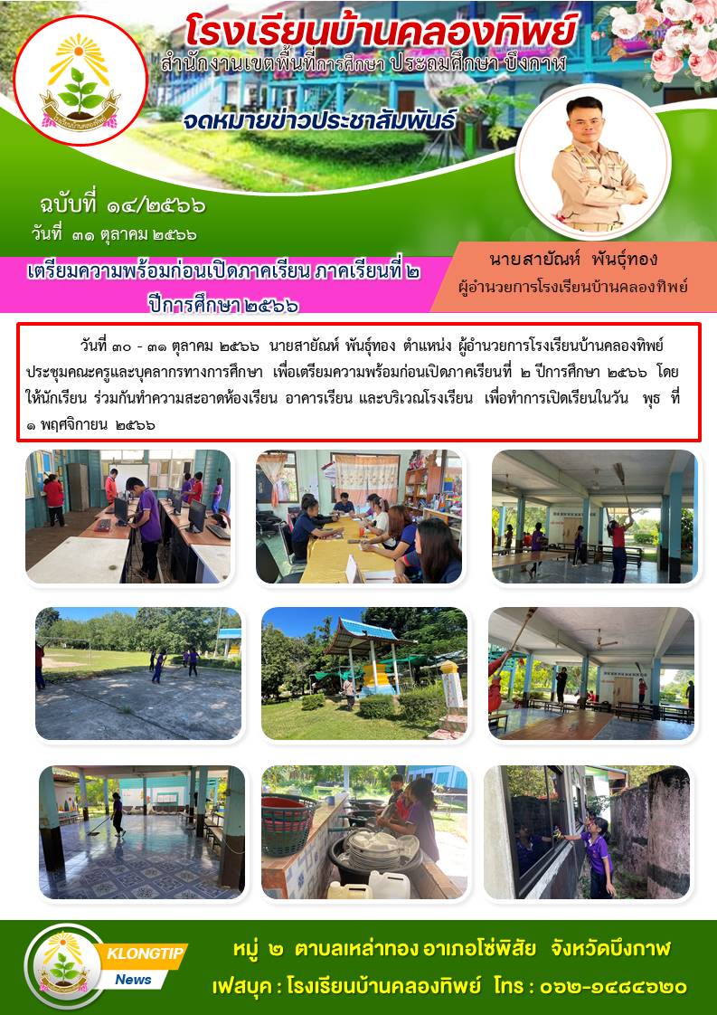 เตรียมความพร้อมก่อนเปิดภาคเรียน ภาคเรียนที่ 2 ปีการศึกษา 2566