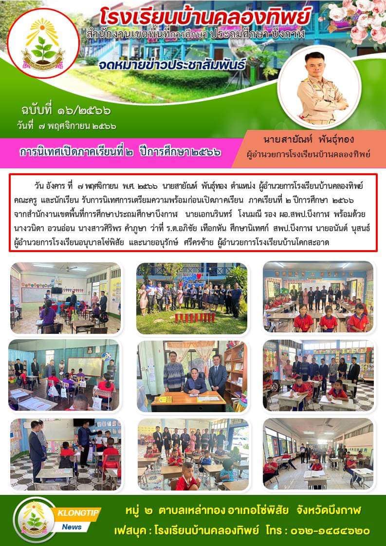 โรงเรียนบ้านคลองทิพย์ รับการนิเทศเปิดภาคเรียนที่ 2 ปีการศึกษา 2566